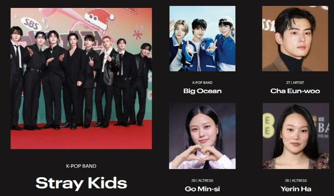 빅오션·하예린등도이름올려[이데일리스타in윤기백기자]그룹스트레이키즈,가수겸배우차은우등이미국경제매체포브스가선정한‘아시아에서영향력있는30세이하30인’명단에이름을올렸다.(사진=포브스)포브스는15일(현지시간)홈페이지를통해‘아시아에서영향력있는30세이하30인’명단을공개했다.포브스는매년금융·예술·스포츠등10개분야별로아시아·태평양지역에서활동하는30세이하리더를30명씩선정하고있다.엔터테인먼트&스포츠부문명단에는스트레이키즈와차은우,청각장애아이돌그룹빅오션,배우고민시,배우손숙의외손녀하예린이이름을올렸다.포브스는스트레이키즈에대해“빌보드메인앨범차트빌보드200에서1위를차지한세번째K팝그룹”이라며“세계적인인기를얻고있는그룹”이라고짚었다.차은우에대해서는“광고계에서영향력을발휘하고있다”고언급했다.윤기백([email protected])Copyright©이데일리.무단전재및재배포금지.