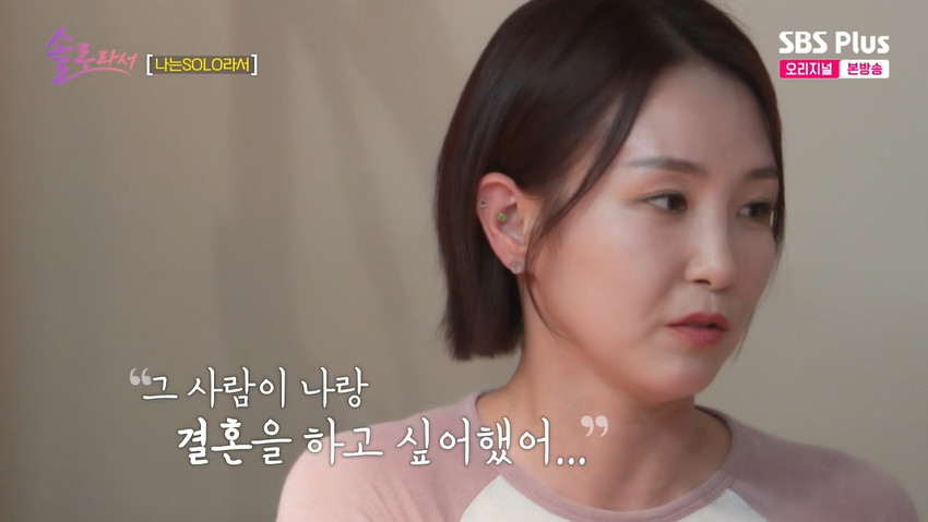 ▲사진|'솔로라서'방송화면[스포티비뉴스=배선영기자]방송인오정연이과거연애사를고백했다.13일방송된SBSPlus,E채널예능프로그램'솔로라서'에서배우이수경은오정연과함께한식당을찾았다.해당식당은이수경의지인이운영하는곳.이날오정연은이수경의지인에게연애상담을했다.오정연은"저사람이괜찮고나를좋아한다고하면커피한잔못마신다.나는어디에꽂히는지잘모르겠다.그래서운명이라고생각한다"라고말했다.이에이수경지인은"저한테는그런느낌없냐"라며호감을표시하기도했다.▲사진|'솔로라서'방송화면이날오정연은자신의연애스토리를솔직하게털어놨다.그는"30대중반사춘기가확왔을때그런우울한시기를다보낸후만났던사람이있다.매일만나고제주변인,가족들과도친하게지냈다.다좋았고,직장인이었는데도제가원하면언제든지만났다"고말했다.이어"연애한지2년이거의다되어가던때에그사람이결혼을하고싶어했다.그런데나는일을더하고싶었다.결혼시기에대한이견이서로안좁혀지더라"라고털어놨다.또오졍연은"지금은결혼하고싶은마음이있다"라면서도"그렇다고그사람이그립지는앟다.당시선택에대한후회는없다.결혼을하지않고한일들에서오는즐거움도컸다"고전했다.한편오정연은2009년전농구선수서장훈과결혼했으나2012년합의이혼했다.<저작권자ⓒSPOTVNEWS.무단전재및재배포금지>Copyright©스포티비뉴스.무단전재및재배포금지.