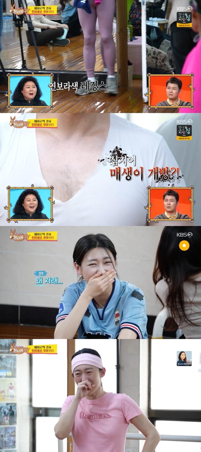 ‘사당귀’.사진lKBS전현무가김진웅의패션에경악했다.11일오후방송된KBS2예능프로그램‘사장님귀는당나귀귀’(이하‘사당귀’)에는할마에를찾아간KBS아나운서단이모습을보였다.이날방송에서엄지인은홍주연,김진웅,허유원,정은혜를에어로빅강사인할마에에게찾아갔다.할마에는“1분준다.빨리옷갈아입어.안그럼아웃이야!”라며김진웅에게못갈아입을시간을줬고진웅은딱붙는레깅스를입어모두를질색하게했다.전현무는“나도저렇게는안입었어”라며혀를내둘렀고홍주연은“왜저래”라며어이없는웃음을지었다.‘사당귀’는매주일요일오후4시45분KBS2에서만날수있다.[서예지스타투데이객원기자]Copyright©스타투데이.무단전재,재배포및AI학습이용금지