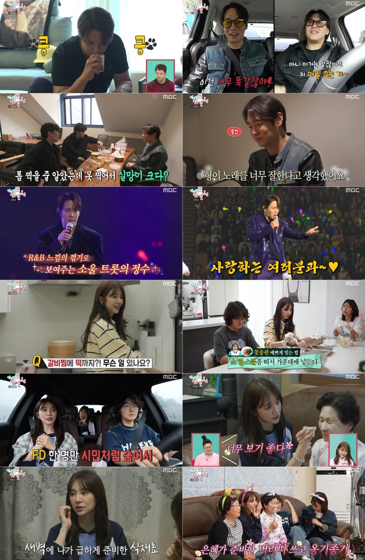 '전참시'가트로트신인으로돌아온플라이투더스카이환희와드라마퀸베이비복스윤은혜의금손일상을공개했다.iMBC연예뉴스사진10일(어제)방송된MBC예능프로그램'전지적참견시점'(기획강영선/연출김윤집,전재욱,이경순,김해니,정동식,이다운/작가여현전/이하'전참시')346회에서는반전매력이폭발한R&B황태자환희와매니저의할머니댁에방문한윤은혜의뜻깊은하루가그려졌다.이날환희의일상이최초공개됐다.그는칼각이불정리,청소기를구석구석돌리는등원조청소광브라이언못지않은깔끔한모습으로참견인들을깜짝놀라게했다.또한향수,향초등집안곳곳에향기템을한가득구비해놓은환희는연신냄새를맡아웃음을자아냈다.환희의마동엽매니저는"향에민감하다.습관적으로냄새를맡고항상향수를뿌리고다닌다"라고그를제보했다.그런가하면환희는'현역가왕2'출연이후트로트에푹빠진모습으로시선을사로잡았다.그는'현역가왕2'전국투어콘서트를위해마매니저와함께스케줄을이동했고,그과정에서두사람의똑같은취향과패션스타일이드러나흥미를더했다.이후환희는회사에서막내매니저를만났고촬영특성상매니저없이홀로트로트가수들사이에서지내야했던솔직한마음을털어놔이목을집중시켰다.환희는매니저들과함께콘서트장으로향했고,팬들의응원속에무대에올랐다.팬들의환호성속에서환희는R&B느낌의꺾기로소울트로트의정수를보여주며감성을폭발시켰다.화려한춤실력을자랑하는환희표소울트롯무대는참견인들은물론,시청자들의마음까지완벽히훔쳤고트로트까지섭렵한그의모습이토요일밤을후끈달아오르게했다.다음으로베이비복스출신배우윤은혜의하루가이어졌다.윤은혜는어버이날을맞아매니저의할머니댁에방문하기로했고소문난금손답게갈비찜부터꽃송편까지직접준비하며요리실력을발휘했다.윤은혜의지휘아래문상민매니저와동거인은희는함께음식을완성해나갔고,맛과멋모두잡은결과물이보는이들의군침을자극했다.준비를끝마친윤은혜와매니저는할머니집이있는태안으로출발했고여전한티격태격찐가족모멘트를보여웃음을안겼다.그가운데윤은혜는최근까지도큰이슈가된출연작'궁','커피프린스1호점'의드라마비하인드를공개했다.드라마OST로추억여행을떠난윤은혜는"사람들이실제데이트로착각했다.라이브로찍었다"라며'궁'주지훈과의키스신일화를밝혔다.더나아가'커피프린스1호점'에서공유와의촬영에서는"대본에없었는데뽀뽀를했다"라고말해시청자들의도파민을폭발시켰다.잠시후윤은혜는매니저의할머니집에도착해특별한시간을마련했다.조명,카메라등을준비해온윤은혜는매니저의할머니사진을남기며추억을쌓아갔다.이어할머니의최애음식중하나인카레까지즉석에서요리해감탄을자아냈다.가족보다더가족같은돈독한이들의관계성은보는이들의마음을따뜻하게했다.문매니저는윤은혜에게"우리가족을위해서마음을더써주는것같다.너무고맙다"라고감사인사를전하며여운을선사했다.다음주방송에서는독보적인콘셉트를지닌'K-POP대표주자'아이들이완전체로돌아와다채로운일상을공개한다.민니의새로운집부터,재계약과정비하인드가최초베일을벗을예정이다.또한,데뷔20주년을맞은개그우먼신기루가생애첫팬미팅준비과정과함께절친개그맨허안나,장도연,이은형을만나케미를발산한다고해기대가모인다.MBC예능프로그램'전지적참견시점'은매주토요일밤11시10분방송된다.iMBC연예백아영|사진출처MBCCopyright©MBC연예.무단전재및재배포,AI학습금지.
