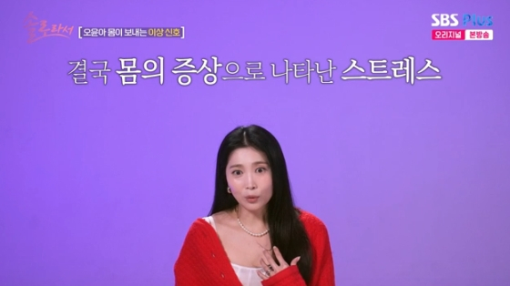 [스타뉴스|김정주기자]/사진=SBSPlus·E채널예능'솔로라서'방송화면배우오윤아가몸이보내는이상신호에한의원을찾았다.6일방송된SBSPlus·E채널예능'솔로라서'에서는오윤아가한의원을방문해건강검진을받는모습이그려졌다.이날오윤아는"요즘스트레스때문인지감기가오래가고몸곳곳에염증이생기는것같다"며건강상태를체크하기위해한의원을찾았다.그는한의사와의면담에서"2010년에갑상선암수술을했다.최근15년만에처음으로약용량을늘렸다.제가작년에스트레스가좀심했던것같다.빈혈이나저혈압이오고어지럼증도있다.눈도침침한것같다"고털어놨다.VCR을보던오윤아는"이상하게요즘피로가누적되면서몸이못견디는것같고지치더라.밖에나가기도싫고,기분이우울해진다.감정을처음느꼈다"라며"전반적으로늘있었던일인데좀더심하게다가오는듯한느낌이든다"라고밝혔다.이에신동엽은"어떤놈이냐"라고물어웃음을유발했다./사진=SBSPlus·E채널예능'솔로라서'방송화면진단을마친한의사는오윤아의스트레스지수가높다고지적하며질병화되기전단계에와있다고말해충격을안겼다.그는"오로지뇌가받는스트레스를봤을때되게높다.뇌의과활성화가너무심하고잠을얕게자서몸의회복이잘안되는것같다"고지적했다.또"심장에만이상고열이있다"며"심장에열이쌓이는것이신체화되면공황장애나실신이올수있다.열이쌓이면갑상선에암이나종양이생길확률이높아진다"라고덧붙였다.오윤아는제작진과의인터뷰에서"저는갑상선수술했을때되게놀랐다,아이케어가힘들고남편과관계도안좋아지면서가정이깨질까봐두려움이컸다.그때속으로삭이면서밖에서는웃으면서촬영하고티를안내니까몸으로온것같다"고고백해안타까움을자아냈다.김정주기자[email protected]©스타뉴스&starnewskorea.com,무단전재및재배포금지