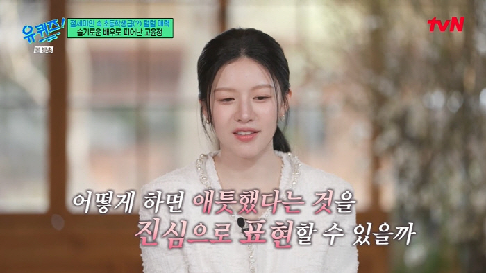 방송화면캡쳐[OSEN=김예솔기자]배우고윤정이'유퀴즈'에등장했다.30일방송된tvN'유퀴즈온더블럭'에서는데뷔6년차대세배우고윤정이게스트로등장했다.고윤정은"카메라가진짜많다"라며당황해해웃음을자아냈다.고윤정은긴장한모습으로"배우고윤정이라고합니다"라고인사했다.방송화면캡쳐고윤정은"유퀴즈에나가게됐다는얘길듣고처음으로얘기한자리가외할머니생신파티때였다.뭔가비밀인것같아서대놓고얘기하면안될것같아서이모한테만살짝얘기했다.근데이모가유퀴즈하고소리쳐서주인공이할머니가아니라제가됐다"라고말해웃음을자아냈다.고윤정은평소긴장을많이해눈길을화제를모았다.고윤정은"내가그렇게긴장하는줄몰랐다.드라마는편집이있는데시상식은3시간씩하고그러니까"라고말했다.방송화면캡쳐유재석과조세호는고윤정이출연해서드라마'언젠가는슬기로울전공의생활'에서커피차를보냈다며고맙다고인사했다.게다가현장에는드라마'언젠가는슬기로울전공의생활'크리에이터신원호감독이응원차방문해눈길을끌었다.신원호PD는"정말좋은배우고멋진배우인데연예인이덜됐다.너무긴장을많이하고쫄아서화이팅을해주고싶어서유재석형님과세호한테잘부탁드린다고말씀드리고싶었다"라고말했다./[email protected][사진:tvN'유퀴즈온더블럭'방송캡쳐]Copyright©OSEN.무단전재및재배포금지.