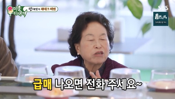 SBS‘미운우리새끼’캡처SBS‘미운우리새끼’캡처SBS‘미운우리새끼’캡처[뉴스엔유경상기자]전원주가여운계와산건물이10배올랐다고말했다.4월27일방송된SBS‘미운우리새끼’에서는새신랑김종민,김준호가짠대모전원주를만나경제수업을받았다.김준호는짠대모전원주에게결혼식축의금을얼마나내는지질문했다.전원주는“상대에따라액수가다르다”며친한선우용여아들이라면30만원,방송에서한번본사이라면10만원을한다고답했다.김준호결혼식도초대받는다면10만원이라며“사랑을많이줄거”라고했다.이어김준호는“사부님기사를보면엄청난부자라고나온다.건물이몇채에주식이있다고”라고질문했고전원주는“부동산일하는사람들을몇군데사귀고.급매나오면전화달라고.여운계와둘이친했다.살았을때우리는놀러안갔다.부동산에갔다.신촌에건물이급매로나와서둘이샀다.지금10배가올랐다”고말했다.김준호는“종민아,우리같이사자.너얼마나있어?난없어.뭐라도합쳐보자”고너스레를떨며“종민이와저는주식을좋아한다.주식으로돈을번적이없다.방법좀알려달라”고조언을구했다.전원주는“주식을볼때는먼저회사를봐야한다.무너지는회사인가.건물을찾아가서봐라.꿋꿋한걸사면손해가없다”고말했다.김준호가“언제파냐.제일오래갖고있는게몇년이냐”고묻자전원주는“30년”이라고답했고김준호는“30년이면저80세다.못쓴다”며기함했다.전원주는“파는재미보다모으는재미가크다.누워있으면돈이왔다갔다하면잠이저절로오고마음이풍성하다.후회하는씀씀이가되면안된다.잘썼다해야한다”고강조했다.또전원주는관상학을배웠다며돈을빌려줄때도관상보고빌려준다고했다.김준호와김종민중에는김준호에게돈을빌려주겠다며“전김종민은착한데(속이)조그매.난정확하게봐.보면알아.김준호는비위는잘못맞춰도마음은제대로”라고봤다.(사진=SBS‘미운우리새끼’캡처)뉴스엔유경상yooks@기사제보및보도자료[email protected]ⓒ뉴스엔.무단전재&재배포금지Copyright©뉴스엔.무단전재및재배포금지.