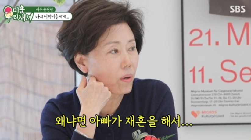 BS예능‘미운우리새끼’배우윤현민이두명의모친을공개해놀라움을안겼다.27일방송된SBS예능‘미운우리새끼’(이하미우새)에는배우윤현민이출연했다.이날윤현민은모친에게카네이션과신용카드를선물했다.윤현민의모친은“그어머니에게도금일봉을드려야한다”고말해궁금증을자아냈다.윤현민부친과재혼한새어머니을말한것.윤현민모친은“어차피아빠가재혼해서아빠를만나러가거나하면뵙게되는데그때‘아줌마’라고부르는것은예의가아니니.어머니라고불러야한다고말한것”이라고했다.이상황에대해윤현민은“난어렸을때부터그래서괜찮은데친구들은신기해한다”라고말했다.장정윤온라인기자[email protected]©스포츠경향.무단전재및재배포금지.