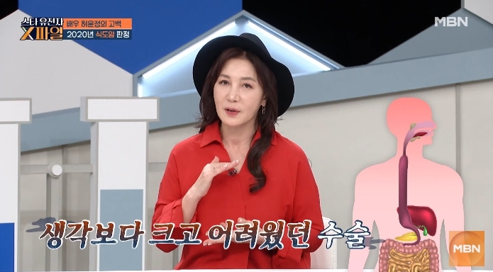 MBN‘임성훈의스타유전자X파일’에출연한배우허윤정.배우허윤정이식도암투병기를공개했다.26일방송된MBN‘임성훈의스타유전자X파일’에서는배우허윤정이출연해5년전식도암진단과수술,회복과정등을솔직히전했다.이날방송에서허윤정은“음식을삼킬때걸리는느낌이들었다”며“병원에가봤더니식도암이라고하더라”면서“하늘이무너지는기분이었다.내시경으로수술할수있는골든타임은이미지났다.큰결단이필요했다”고말했다.MBN‘임성훈의스타유전자X파일’에출연한배우허윤정.허윤정은“아버지가항암치료로너무고생하시는걸보고식도절제를결심했다”며“총24cm의식도를절제하고위를끌어올려대신붙였다”고설명했다.그는“식도가없다는건괄약근이없다는뜻이다.물을마시고고개를숙이면바로역류했다.먹지도못했고바로토했다”면서“200g씩매일빠지다보니한달만에15kg가까이체중이줄었다”고말해모두를안타깝게했다.다행히현재그는회복중이다.허윤정은“지금은계속추적관찰중이다.의사선생님이매우좋은상태라고하더라.완치판정까지는6개월남았다.그날만을기다리고있다”고덤덤히밝혔다.한편허윤정은1984년MBC17기공채탤런트로데뷔해드라마‘종합병원’,‘대추나무사랑걸렸네’등다양한작품에서활약한‘원조하이틴스타’다.현재연극무대와대학교수로활동중이다.강주일기자[email protected]©스포츠경향.무단전재및재배포금지.