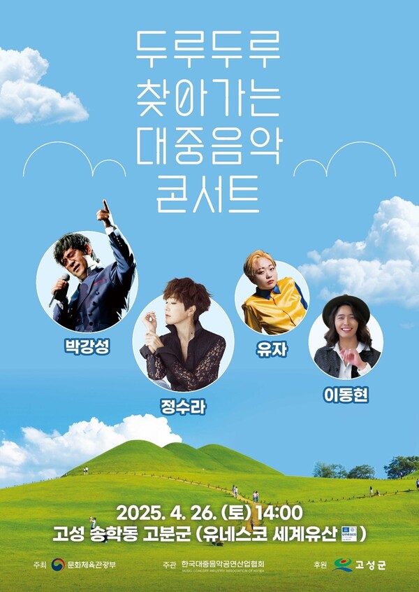▲'두루두루찾아가는대중음악콘서트'고성군편포스터.제공|음공협[스포티비뉴스=김원겸기자]박강성,정수라등이경남고성군콘서트에참가한다.㈔한국대중음악공연산업협회(이하음공협)가주관하는‘두루두루찾아가는대중음악콘서트’가오는4월26일유네스코세계유산경남고성송학동고분군특설무대에서열린다.'봄愛반하고고성愛취하다'라는테마로개최되는이번공연은7080가요와트로트의장르로특별한시간을전할예정이다.라이브의귀재이자7080감성히어로박강성,폭발적가창력의7080레전드정수라,카리스마넘치는록스타이동현,MZ세대의끝판왕유자가출연해봄애(愛)반하고고성애(愛)흠뻑취할시간을전해줄예정이다.‘두루두루찾아가는대중음악콘서트’는5월말까지전국방방곡곡을다니며총13회의공연을무료관람으로진행된다.각지역의특화된알맞은장르의음악으로지역과지역민들의문화적삶의질을향상하게시킬예정이다.음공협은“그동안문화향유의기회를충족하지못한지역민들의뜨거운반응에큰보람을느끼며앞으로남은공연에도최선을다할것이다”라고밝혔다.한국대중음악공연산업협회는콘서트,페스티벌,월드투어,내한공연등다양한대중음악공연을주최∙주관하고있는총43개사의협회원사로구성되어있으며,대중음악공연산업의미래와종사자의권리를위해협력하는사단법인단체이다.<저작권자ⓒSPOTVNEWS.무단전재및재배포금지>Copyright©스포티비뉴스.무단전재및재배포금지.