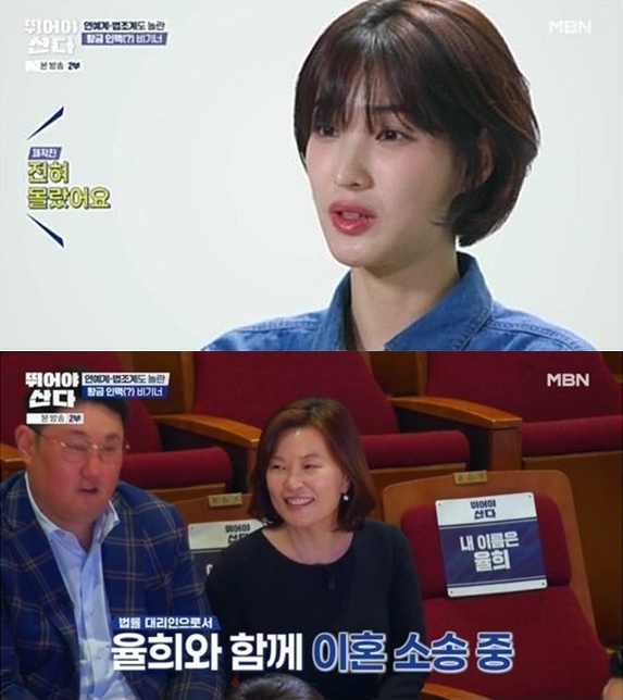 ▲출처|MBN'뛰어야산다'캡처[스포티비뉴스최신애기자]율희가최민환과재판까지간다.19일첫방송된MBN'뛰어야산다'에서는저마다의이유로달리기를시작하는16인의모습이펼쳐졌다.이날대망의발대식이진행된가운데,최근이혼한율희가등장하자모두입을'쩍'벌렸다.특히양소영변호사와배우방은희가깜짝놀라눈길을끌었다.방은희는"정말깜짝놀랐다.율희가나올줄은몰랐다.이혼한남편회사에있었던라붐이란그룹의멤버였다.내가율희를예뻐했다"며인연을밝혔다.또한양소영변호사는"나는율희씨변호사다.지금이혼소송대리를맡고있다"고전했다.그러면서"우리곧(이혼)재판가야하는데.."라고말해율희와최민환의이혼상태가어떤지살짝언급했다.한편율희는지난해FT아일랜드최민환과이혼소식을전했다.<저작권자ⓒSPOTVNEWS.무단전재및재배포금지>Copyright©스포티비뉴스.무단전재및재배포금지.