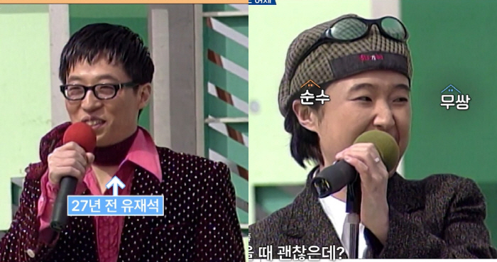 [스포츠조선닷컴정안지기자]유재석과송은이,김숙이27년전'전국노래자랑'에출연했던모습이공개됐다.17일방송된KBS2'옥탑방의문제아들'에는송가인이게스트로출연했다.이날송가인은'전국노래자랑'관련문제에"2010년도에'전국노래자랑'에출연했다.진도군편에서1등,연말결산2등했다.그계기로작곡자선생님한테연락이와서앨범내고트로트가수를하게됐다"며송가인의탄생을밝혔다.그때송은이와김숙도27년전'전국노래자랑'에출연했던당시를떠올렸다.송은이는"'남편은베짱이'라는아주사랑받았던코너가있었다.나는진주의'난괜찮아'를선곡해무대에올랐다"며"마이크스탠드가안뽑히다가마이크를맞고넘어진뒤,'괜찮냐'고하면'난괜찮아'라며노래를부르며퇴장을하는콩트를했다"고설명했다.그때27년전'전국노래자랑'에출연했던유재석과송은이,김숙의모습이공개돼웃음을안겼다.이과정에서순수무쌍이었던송은이와가발을쓴채객석에서응원하는김숙의모습이눈길을끈다.이때김숙은당시23살이던자신의모습에"지금이더젊다.저때왜이렇게늙었냐"고해웃음을안겼다.또한파르르떨며힘겹게마이크를뽑다가결국마이크에맞고쓰러진뒤,들려나가면서도'난괜찮아'를외치는송은이의모습은웃음을유발했다.이어유재석이화려한의상을입은채등장해"귀여운베짱이유재석이다"며인사를하는모습은폭소를자아냈다.그때꽃다발을들고무대에난입한채고(故)송해에게와락안기는콩트를선보인김숙의모습도웃음을자아냈다.송은이는"선생님께서콩트를받아주셨다"며"대단하시다고느낀게대본만살짝드리고'선생님저희이런거할거다'고했다.'어알았다'고하셨는데저렇게받아주셨다"고전했다[email protected]©스포츠조선.무단전재및재배포금지.