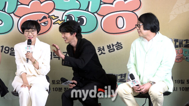 팽현숙,유승호,최양락/마이데일리[마이데일리=김도형기자]17일오후서울마포구월드컵북로스탠포드호텔코리아에서JTBC예능프로그램'대결!팽봉팽봉'제작발표회가열렸다.이날현장에는이진주PD,신혜원PD,최양락,이봉원,팽현숙,이은지,유승호,곽동연이참석했다.이날아내팽현숙을도와'팽식당'직원으로활약한최양락은"팽현숙씨는제가너무잘알지않느냐.그어떤프로그램보다진정성이돋보였다.아주만족스러웠다"며뿌듯함을드러냈다.그러면서도시즌2에대한속내를드러내웃음을자아냈다."시즌2가된다면안할거다.너무힘들었다"고솔직한후기를전했다.팽현숙으로부터야단을맞은최양락은발언을번복하며"제가착각을했던것같다.시즌2가된다면더열심히해보도록하겠다"고해명해웃음을안겼다.'대결!팽봉팽봉'은요식업에사활을건이봉원과팽현숙이해외의작은섬에나란히두개의식당을내고영업대결을펼치는리얼리티예능프로그램이다.오는19일저녁7시10분첫방송.Copyright©마이데일리.무단전재및재배포금지.