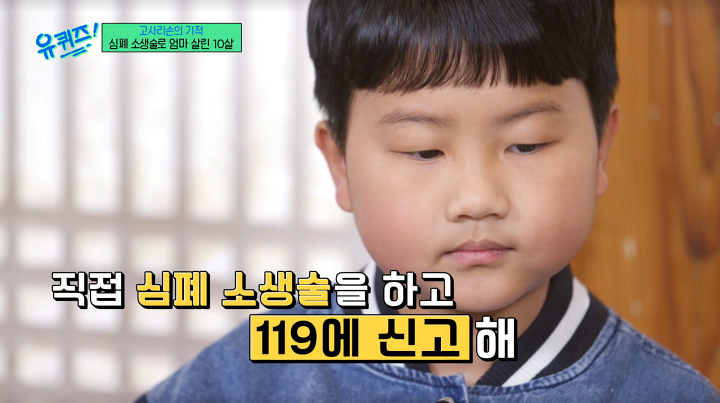 심폐소생술로엄마를살린10살정태운어린이가출연했다.iMBC연예뉴스사진iMBC연예뉴스사진iMBC연예뉴스사진16일방송된tvN'유퀴즈온더블럭'에는급성심근경색으로쓰러진엄마를살린10세어린이가등장했다.이날유재석은"뉴스에서봤지만정말대견하다.지난1월어머님이급성심근경색으로쓰러졌는데태운군이심폐소생술을하고119에신고해서어머님을살렸다"고소개하며"고사리손으로어머님을응급한상황에서구조했다"고감탄했다.정태운어린이는당시상황에대해묻자"대화하다가갑자기주방에서쿵소리가났다.엄마가거품물고누워있었다.엄마가숨쉬는지확인하고119에신고해서,119올때까지심폐소생술을했다.엄마가쓰러져있어서무섭기도했는데침착하게했다"고하며어린이집과태권도장,초등학교에서심폐소생술을배웠기때문에119가오기전까지심폐소생술을할수있었다고밝혀놀라움을안겼다.이어정태운어린이는"힘들지않았냐"는질문에"힘들어서엄마위에올라타서했다"고답했다.그런가하면정태운어린이는엄마에게'엄마조심해,약먹고가,무리하지마'라는말을자주한다고.이런말을자주하는이유를묻자정태운어린이는"엄마가무리해서또쓰러질까봐했다"고하며"엄마무리하지말라고하고싶다.엄마는예쁜엄마"라고해감동을안겼다.한편tvN'유퀴즈온더블럭'은매주수요일오후8시45분방송된다.iMBC연예백아영|사진출처tvNCopyright©MBC연예.무단전재및재배포,AI학습금지.