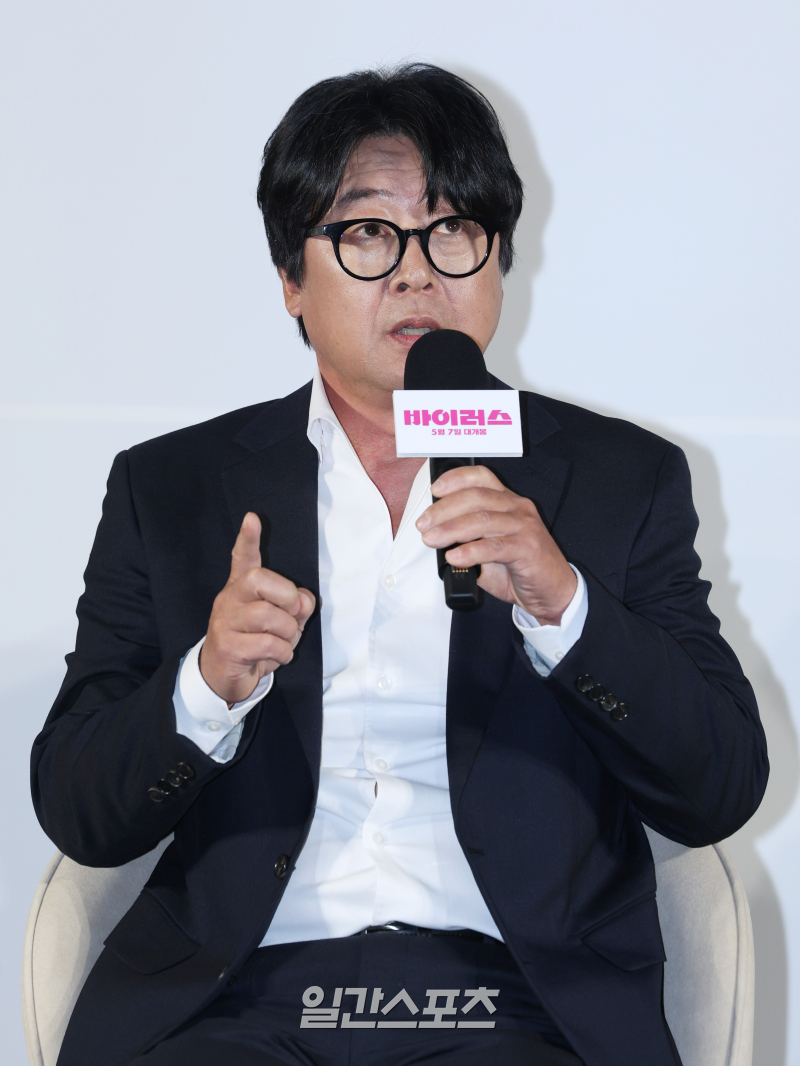 배우김윤석이16일오전서울강남구메가박스코엑스점에서열린영화'바이러스'제작보고회에참석해배역소개를하고있다.'바이러스'는이유없이사랑에빠지는치사율100%바이러스에감염된'택선'이모쏠연구원'수필',오랜동창'연우',그리고치료제를만들수있는유일한전문가'이균'까지세남자와함께하는예기치못한여정을그린영화.오는5월7일개봉.서병수기자[email protected]/2025.04.16/김윤석이‘바이러스’에서배두나의세번째만남상대로호흡을맞춘다.16일오전서울강남구메가박스코엑스에서는영화‘바이러스’제작보고회가열렸다.이자리에는배우배두나,김윤석,장기하와강이관감독이참석했다.이날김윤석은“(극중이균은)우울증치료제를화학적인부작용없이생물학적으로만드는게목표인인물”이라며“사람을힘들게하는병을낫게하고좀더긍정적이고밝은삶을살아갈수있도록반드시생물학적우울증치료제를만들고자7년연구한다”고캐릭터를소개했다.이어그는“그러던중에미국에서귀국과정에서택선(배두나)이라는감염의심자를만나게된다”며“그래봤자전택선이만나는세번째남자고최고연장자다”라고너스레를떨었다.극중이균은바이러스전문가지만사실무언가를성공해본적없고감정에서툰인물이다.김윤석은“T형이과,T형과학자라고하는데제가볼땐T형처럼살고싶은데절대그렇게될수없는F형남자다.특히수필과이균,택선의공통점은연애‘꽝’이다.순수하지만재미없는인물들이다”라고덧붙였다.‘바이러스’는이유없이사랑에빠지는치사율100%‘톡소바이러스’에감염된택선이모쏠연구원,오랜동창,그리고치료제를만들수있는유일한전문가까지세남자와함께하는예기치못한여정을그린다.다음달7일개봉한다.이주인기자[email protected]©일간스포츠.무단전재및재배포금지.