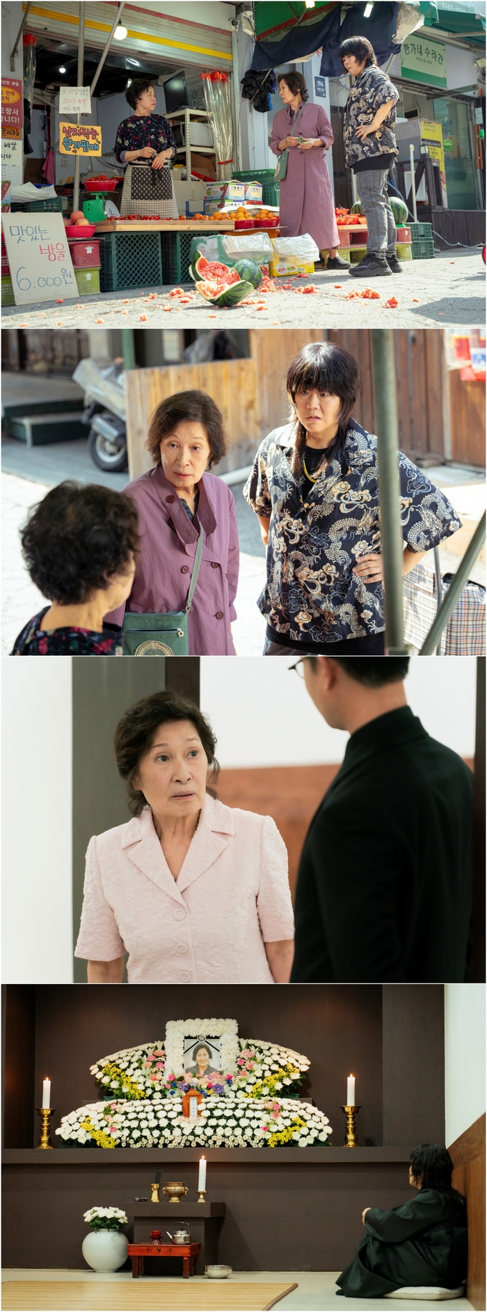 ‘천국보다아름다운’.사진|JTBC‘천국보다아름다운’김혜자가인생의끝에서또다른시작을맞는다.오는19일오후10시40분첫방송되는JTBC새토일드라마‘천국보다아름다운’(극본이남규김수진,연출김석윤)측은첫방송을사흘앞둔16일,강렬한내공과포스의‘일수콤비(?)’이해숙(김혜자분),이영애(이정은분)의출격을예고하는스틸컷을공개했다.‘천국보다아름다운’은80세모습으로천국에도착한이해숙이30대모습으로젊어진남편고낙준(손석구분)과재회하면서벌어지는현생초월로맨스다.죽음이라는인생의끝에서제2의삶을시작하는이해숙의다이내믹한천국입성기가유쾌한웃음너머따뜻한감동을선사한다.‘믿고보는’제작진과배우들의만남은드라마팬들의기다림마저설레게한다.‘눈이부시게’로수많은이들에게인생드라마를선사한김석윤감독과이남규·김수진작가,김혜자를비롯해손석구,한지민,이정은,천호진,류덕환등내로라하는연기파배우들이가세했다.누구나한번쯤떠올려봤을법한상상속천국을현실로그려낼‘작감배’의시너지에기대가쏠린다.그런가운데공개된사진속,등장만으로시장바닥을뒤흔드는이해숙과이영애가포착됐다.백전노장파이터‘일수꾼’과그의후계자겸‘오른팔’로이미상인들사이에서악명이자자한두사람.과일가게앞을가로막고선이들과못마땅한듯한눈빛을흘기는주인,좌판대아래산산조각이난수박까지심상치않은분위기가감돈다.하지만이해숙은흔들림없이꼿꼿한태도로,이영애는모든것을날려버릴기세로환상의팀워크를선보인다.하지만누구나그렇듯두사람에게도이별의순간이찾아온다.앞선예고영상에서“이해숙”을부르던의문의남자로짐작되는실루엣과그에게소환된이해숙의만남이눈길을끈다.그를보자마자이해숙이자신의죽음을감지한데이어,의문의남자는저승행가이드를자처하며죽음이후에대해설명하는장면이공개된바있어그정체에대한궁금증을더한다.무엇보다또다른사진에는혼자텅빈빈소를지키는이영애와함께,영정사진속에서미소를짓고있는이해숙의얼굴이드러나이목을집중시킨다.‘천국보다아름다운’제작진은“이드라마는주인공이해숙의죽음으로부터시작되는이야기다.첫회에서는이해숙이어떤사람이고어떤삶을살았는지확인할수있을것”이라며,“특히김혜자와이정은의파격적인연기변신과더불어,가족이자파트너인두사람만의‘워맨스’가그려질예정이니지켜봐달라”고전했다.JTBC새토일드라마‘천국보다아름다운’은오는19일오후10시40분에첫방송되며,매주토요일오후10시40분과일요일오후10시30분에방송된다.[김소연스타투데이기자]Copyright©스타투데이.무단전재,재배포및AI학습이용금지