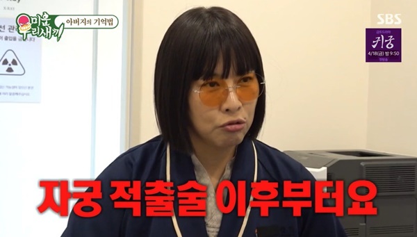 SBS‘미운우리새끼’캡처SBS‘미운우리새끼’캡처[뉴스엔유경상기자]정영주모친이딸의자궁적출수술을몰랐다며안타까운마음을드러냈다.4월13일방송된SBS‘미운우리새끼’에서는배우정영주가부친과함께건강검진을받았다.정영주는“배우생활하며고질병이라디스크,경추,어깨통증을달고산다”며“새로생긴건제가지금갱년기약을복용하고있다”고말했다.의사가“53세인데언제부터복용하셨냐”고묻자정영주는“자궁적출술하고나서부터”라며2019년부터갱년기약을먹었다고했다.자궁적출을한이유로는“이상이있었다.월경리듬도깨지고갑자기폭주하고일에지장이있었다.자궁선근증,통증이심했다”고말했다.수술후다른추가치료는받지않았느냐는질문에정영주는“깨끗하게정리돼문제가없는데그러고나서갱년기증세가나타나약을먹기시작했다”고했다.의사는“48세라조기폐경까지는아니지만이르다.보통폐경이51세,52세인데”라며폐경여성에오는골다공증검사와근골격계검사를해보기로했다.정영주모친은“말을안해줬다.과로로입원한줄알았다.그모습그대로촬영을나가더라”며딸이자궁적출수술을받을때도몰랐다고털어놨다.이후검사결과정영주는뼈건강100점을받았다.부친도뼈건강100점으로부녀지간의뼈건강은타고난것같다는평이나왔다.(사진=SBS‘미운우리새끼’캡처)뉴스엔유경상yooks@기사제보및보도자료[email protected]ⓒ뉴스엔.무단전재&재배포금지Copyright©뉴스엔.무단전재및재배포금지.