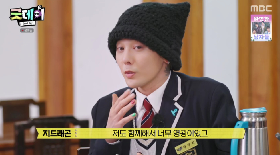 굿데이[티브이데일리최하나기자]지드래곤이'굿데이'의여정을마쳤다.13일밤방송된MBC예능프로그램'굿데이(GoodDay)'8회에서는지드래곤과함께하는2025굿데이프로젝트의마지막이야기가그려졌다.이날지드래곤과광희는함께교복을입고놀이공원에서시간을보냈다.광희는바이킹을타며지드래곤에게"나챙겨줘서고맙다"고속마음을고백했다.이에지드래곤은쑥쓰러운듯"내가챙긴거아니다"라고말했다.광희는그런지드래곤에게"너맨날그러면서맨날나챙기지않나"라고했다.지드래곤은"네가자꾸나태그하지않냐"라고광희에게농담을던져웃음을자아냈다.바이킹에서내린지드래곤과광희는회전목마앞으로갔다.그러던중두사람은회전목마를타고있는정형돈을발견했다.이에지드래곤은정형돈에게향해달려가드라마'천국의계단'패러디를해웃음을자아냈다.놀이공원에서나온세사람은함께식사를하며'굿데이'의여정을마무리했다.지드래곤은"좋은취지에응해주셔서큰힘이됐다"고광희와정형돈에게감사인사를전했다.그러면서지드래곤은시청자들에게"저도음악이라는매개체를통해서많은사람들이잠깜이나마즐겁고,웃고뭔가생겼으면하고시작한프로젝트였다.저는매일와서하루종일웃다가얼굴이아픈채로집에갔다"면서"제가쉴때멤버들만있었다면,지금은멤버가30명이됐다"고마지막인사를전했다.[티브이데일리최하나기자[email protected]/사진=MBC'굿데이']굿데이[Copyrightⓒ*세계속에新한류를*연예전문온라인미디어티브이데일리(www.tvdaily.co.kr)/무단전재및재배포금지]Copyright©티브이데일리.무단전재및재배포금지.