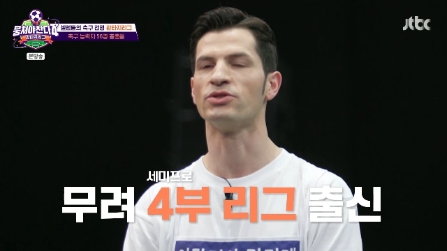 JTBC‘뭉쳐야찬다4’캡처JTBC‘뭉쳐야찬다4’캡처[뉴스엔서유나기자]이탈리아출신방송인알베르토가축구선수출신인사실을자랑했다.4월13일방송된JTBC예능'뭉쳐야찬다4'(이하'뭉찬4')2회에서는안정환,박항서,김남일,이동국네감독의축구리그전을위한선수드래프트가이어졌다.이날알베르토는"저는만5세부터21세까지선수를했고4부리그까지뛰었다"며축구선수임을밝혀모두를놀라게만들었다.한국으로치면K2리그정도된다고.중앙수비수,양측면풀백으로뛰었으며왼발도가능하다고어필하는알베르토에박항서는만족한표정을지었고,남우현은"귀한자원"이라며감탄했다.다만알베르토는"근데만41세라그만둔지20년됐다"며노장이슈를고백했다.다른선수들은40대나이가믿기지않는알베르토에"엄청동안이시다","관리를너무잘하셨다"라며또한번놀라워했다.뉴스엔서유나stranger77@기사제보및보도자료[email protected]ⓒ뉴스엔.무단전재&재배포금지Copyright©뉴스엔.무단전재및재배포금지.