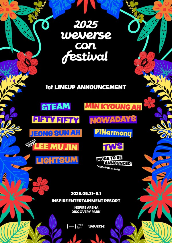 ‘2025위버스콘페스티벌’(제공:하이브,위버스)하이브와글로벌슈퍼팬플랫폼위버스는12일위버스콘페스티벌홈페이지를통해‘2025위버스콘페스티벌’의1차아티스트라인업9개팀을발표했다.이날공개된라인업에는뮤지컬배우부터장기간글로벌차트를점령한대세K팝아티스트는물론,위버스에입점하지않은다양한장르의뮤지션이포함됐다.먼저싱어송라이터이무진이‘위콘페초이스’아티스트로선정돼무대에선다.‘위콘페초이스’는한국에서대중적으로많은사랑을받은음악을선보인위버스미입점아티스트를글로벌K팝팬들에게소개하는무대이다.이무진은2020년JTBC오디션프로그램‘싱어게인-무명가수전’에서강렬한인상을남긴후,2021년발매한‘신호등’이주요음원차트에서장기간상위권에오르며대중적인지도를높였다.대세뮤지컬배우정선아,민경아도라인업에이름을올렸다.정선아는2002년뮤지컬‘렌트’로데뷔한이후‘위키드’,‘시카고’,‘아이다’,‘지킬앤하이드’등에서폭발적인가창력과탁월한무대매너로대한민국을대표하는뮤지컬디바로자리매김했다.민경아는특유의독보적음색으로‘웃는남자’,‘지킬앤하이드’,‘알라딘’등을통해국내뮤지컬신의히로인으로떠올랐다.각각지난해8월과9월팬들과의소통을위해위버스에공식커뮤니티를오픈한이들이음악페스티벌에서는어떠한무대를선보일지기대를모은다.빌보드,오리콘등해외유수음악차트를수놓은글로벌대세K팝아티스트도한자리서만난다.그룹피원하모니(P1Harmony)가위콘페무대에서공연형아티스트로서의진가를발휘한다.지난해미니앨범7집‘새드송(SADSONG)’으로‘빌보드200’16위,빌보드‘2024베스트K-팝앨범25’에오르며글로벌성장세를입증한피원하모니는위콘페무대를통해다시한번팬들을열광케할예정이다.일본레코드협회의‘더블플래티넘’인증을획득하며인기급상승중인앤팀(&TEAM)은3년연속위콘페무대를찾는다.2023년위콘페의막을열고,2024년실내외공연을넘나들며관객들에게강렬한인상을남긴앤팀은올해도에너지넘치는칼군무와화려한퍼포먼스를선보인다.실력파걸그룹라잇썸(LIGHTSUM)도눈길을끈다.지난해8월디지털싱글‘포즈!(POSE!)’를발매한이후각종예능프로그램과대학축제무대에서보여준에너지를위콘페에서쏟아낼예정이다.‘큐피드(Cupid)’로전세계적사랑을받은그룹피프티피프티(FIFTYFIFTY)의무대도준비된다.이들은지난해‘SOS’와‘그래비티(Gravity)’로더블메가히트를기록하며흥행저력을입증한바있다.지난해혜성처럼가요계에등장해팬들을매혹시킨데뷔2년차보이그룹의열정적인무대도주목된다.그룹투어스(TWS)는지난해에이어2년연속위콘페무대에오른다.투어스는지난해1월데뷔곡‘첫만남은계획대로되지않아’로멜론연간차트정상에올랐다.주요음악시상식에서신인상8개를비롯해총18관왕을달성하며차세대K팝리더로자리매김했다.지난해4월데뷔한나우어데이즈(NOWADAYS)도신인보이그룹만의열정적인매력을위콘페에서뽐낸다.데뷔8개월동안총4장의싱글앨범및디지털싱글을발매하며숨가쁜행보를이어온이들은한층더성숙해진매력을전할계획이다.하이브는“지난2월위버스콘페스티벌개최가공지된이후SNS상에서올해의라인업에대한팬들의기대감을엿볼수있었다”라며“이번라인업에서공개된다양한장르의아티스트참여와더불어신설된야외저녁공연이더해져올해는더욱풍성한음악축제가될것”이라고말했다.한편2025위버스콘페스티벌은오는5월31일부터6월1일까지이틀간인천영종도인스파이어엔터테인먼트리조트에서개최된다.2차라인업은이달중,최종라인업은4월중에공개된다.bnt뉴스연예팀기사제보[email protected]©bnt뉴스.무단전재,재배포및AI데이터활용금지