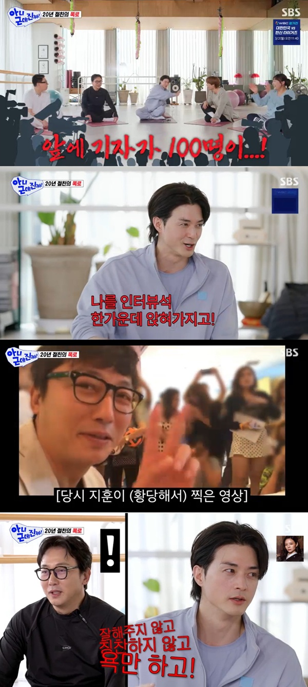 아니근데진짜탁재훈김지훈/사진=SBS캡처[스포츠투데이임시령기자]'아니근데진짜!'김지훈이탁재훈과20년째절친인이유를밝혔다.23일방송된SBS예능'아니근데진짜!'에서는김지훈이게스트로등장했다.이날김지훈은"예전에탁재훈형이태국에놀러가자고하더라.어머니하고가족여행간다고"라며함께여행을떠났던일화를이야기했다.이어"공항에서부터환영인파가엄청났다.호텔가기도전에어디로데리고가더라.따라갔다.테이블이세팅이돼있고,사람들이웅성웅성모였다.저보고앉으라고해서앉았는데앞에기자들이100명이쫙깔려있었다"고해웃음을안겼다.김지훈은"알고보니까연예인축구단으로초대를받아간거다.나한텐가족여행이라고거짓말치고나를인터뷰석한가운데앉혀놨다"며"너무어이가없어서영상을찍었다"고폭로했다.카이가"어쩌다가코가꿰였냐"고묻자김지훈은"이상한매력이있다.탁재훈형스타일리스트가'상상플러스'때부터21년째하고있다는거다"라고말했다.그러면서탁재훈에대해"오래본사람한테절대잘해주지않고,칭찬하지않고욕만한다.그래도빠져드는맛이있다"고말하며'찐'우정을드러냈다.또한김지훈은20년째절친인탁재훈의비밀을알고있다며"이자리에서형은퇴시킬수있다"고해탁재훈을당황하게했다.탁재훈도"내가폭로하면연기접고내밑으로매니저할것"이라고응수했다.[스포츠투데이임시령기자[email protected]]Copyright©스포츠투데이.무단전재및재배포금지.