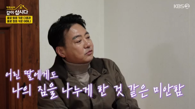 KBS예능‘박원숙의같이삽시다’‘같이삽시다’윤다훈이큰딸에대한애틋함을전했다.20일방송된KBS예능‘박원숙의같이삽시다’(이하‘같이삽시다’)에서윤다훈이과거사촌에게사기당한경험을밝혔다.윤다훈은“엄마손을잡고사촌집에가서(돈을받기위해)매일매일앉아있던기억이난다.그런데사촌이‘언제돈을꿨냐’고하더라”라고운을뗐다.이를듣던혜은이는“그동안얼마나말못할일이많았겠냐.큰아이키울땐더힘들었을거같다”고말했다.윤다훈은큰딸에대해“군대에있다가휴가를나왔을때,잠시만난인연이딸을선물로주고떠났다.당시부모님께서‘네자식인데우리가키우는것이맞다’고하셨다.근데내가부모의입장이되다보니(우리부모님이)나때문에많이힘드셨겠다는생각이들더라”라고털어놨다.또윤다훈의모친은손녀에게밖에서아빠의이야기를하지말라고당부했다고.윤다훈은“딸이할머니손만잡고다녔다.내옆으로안오더라.매번내뒷모습만본것이미안하고속상했다”고전했다.그러면서“지금은(딸과)편하게지낸다.시간이많이지났고결혼을해손녀를낳았다.손녀보다딸이더예쁘다”며미소를보였다.장정윤온라인기자[email protected]©스포츠경향.무단전재및재배포금지.
