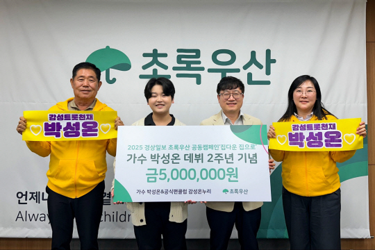 가수박성온기부‘미스터트롯2’출신가수박성온과팬들이데뷔2주년을맞이해선한영향력을행사했다.박성온과그의공식팬클럽감성온누리는지난24일박성온이나눔천사28호로인연을맺은‘초록우산어린이재단울산지역본부’에기부금500만원을전달했다.박성온의데뷔2주년을기념해진행된2주간의모금운동을통해모았다.박성온측은"2010년생인가수박성온또래의어린이들에게소중하게쓰여지길바라는그의진심과팬들의따뜻한마음이담겨있다"고전했다.박성온과팬들이전달한기부금은초록우산어린이재단울산지역본부를통해울산지역아동주거환경개선사업인‘집다운집으로’캠페인에사용될예정이며,주거빈곤아동들의생활환경개선을위해쓰여질계획이다.한편박성온은JTBC‘히든싱어7’에서왕중왕전우승을하며이름을알렸다.이어서TV조선‘미스터트롯2에서TOP7에등극했다.안진용기자Copyright©문화일보.무단전재및재배포금지.
