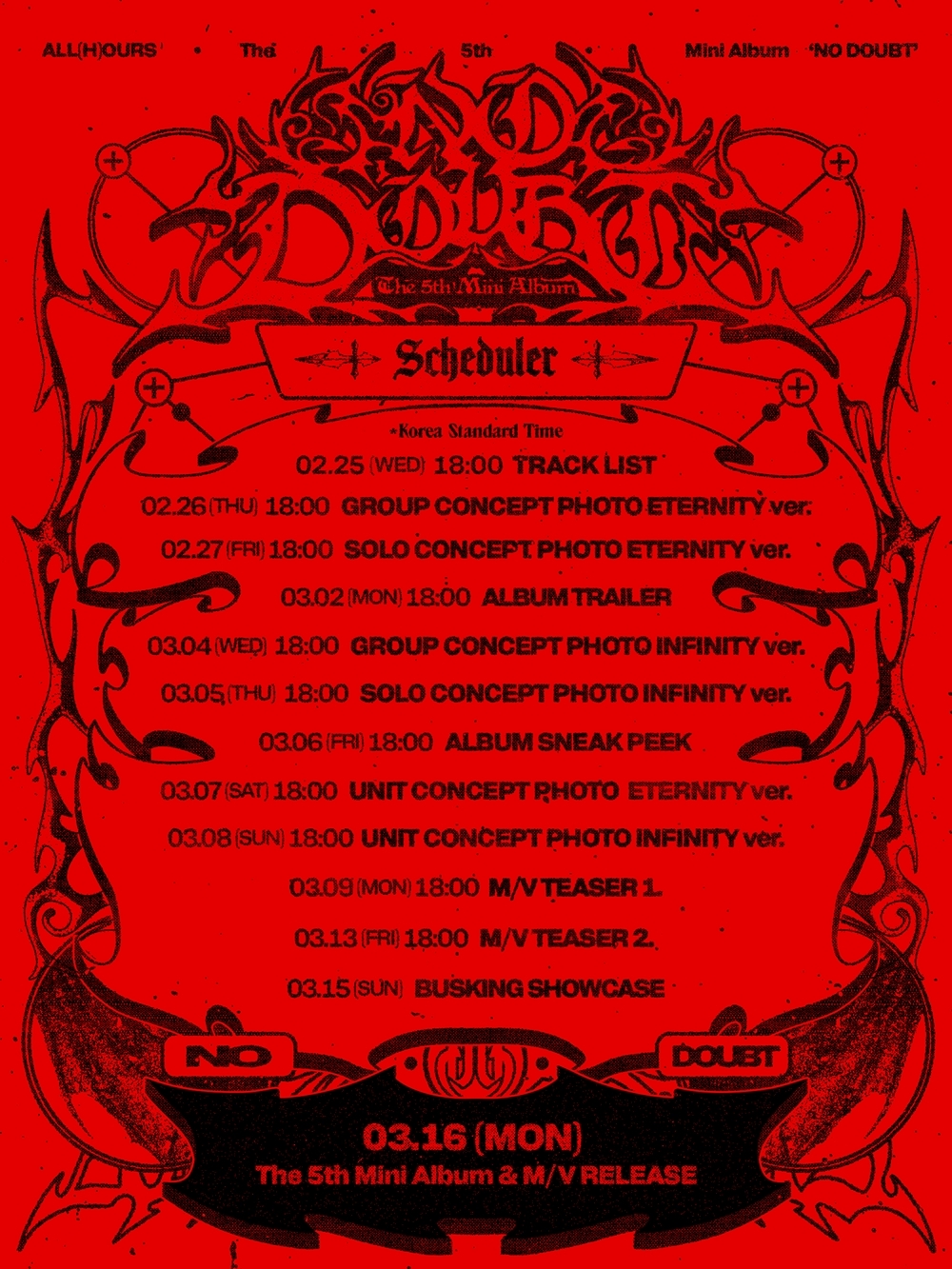 이든엔터테인먼트제공아이돌그룹올아워즈(ALL(H)OURS)가글로벌팬심을사로잡을준비를마쳤다.24일소속사이든엔터테인먼트는“올아워즈(건호,유민,제이든,민제,마사미,현빈,온)가오는3월16일다섯번째미니앨범‘NODOUBT(노다웃)’을발매한다”라고밝혔다.올아워즈는SNS를통해스케줄러이미지를공개했다.공개된이미지에따르면올아워즈는오는25일트랙리스트공개를시작으로본격적인컴백예열에돌입한다.26일과27일,3월4일과5일,3월7일과8일세차례에걸쳐콘셉트포토를공개하며팬들을설레게할예정이다.이어앨범트레일러와두가지버전의뮤직비디오티저를오픈하며팬들의기대감을고조시킬전망이다.특히앨범발매전날인15일일요일에는좀더많은팬들을직접만나기위해이전컴백때와는달리스페셜한버스킹쇼케이스를개최하고팬들을만날것을예고하며기대감을한껏끌어올리고있다.또올아워즈는컴백소식에앞서지난23일SNS에‘악마와의계약’라이브를예고해모두를술렁이게했다.이어같은날저녁11시공식유튜브채널을통해라이브가진행됐다.이날올아워즈는K팝산업의불합리함과선택받지못한괴로움등에대해이야기했고,멤버들이부조리함에환멸을느껴악마와의계약을진행하는모습으로글로벌팬들의궁금증을자극했다.‘NODOUBT’는올아워즈가지난1월발표한팬송‘나의봄,나의빛,나의숨’이후약2개월만에공개하는신보다.그동안자신들만의정체성을중점으로다채로운매력을선보이며사랑받은올아워즈는이번에도강렬한음악과비주얼,메시지를담은‘NODOUBT’으로독보적인존재감을증명할계획이다.올아워즈는데뷔와동시에‘신흥퍼포돌’로눈도장을찍었고,매앨범초동판매량자체최고기록을경신하며주목받았다.또앞서도쿄,오사카,홍콩,타이베이,유럽등지에서첫번째팬콘서트를성공적으로마무리한올아워즈는현재북미투어를통해7개의도시를돌며글로벌팬들과만나고있고,동시에컴백준비에박차를가하고있다.올아워즈다섯번째미니앨범‘NODOUBT’은오는3월16일오후6시각종온라인음원사이트를통해발매된다.손봉석기자[email protected]©스포츠경향.무단전재및재배포금지.