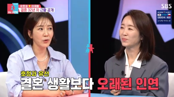 [스타뉴스|김정주기자]/사진=SBS예능프로그램'동상이몽2-너는내운명'배우유호정이윤유선과의오랜우정을과시했다.24일방송된SBS예능프로그램'동상이몽2-너는내운명'에는결혼25주년을맞아일본으로은혼여행을떠난윤유선,이성호부부의좌충우돌여행기가그려졌다.이날스튜디오에는11년만에안방극장으로복귀해주말시청률1위를기록하며제2의전성기를맞은배우유호정이등장해시선을모았다.7년만에예능에출연한유호정은"유선이가출연한다고하길래한달음에달려왔다.유선이랑저랑은32년지기다"라고애정을드러냈다.윤유선역시"결혼생활보다오래됐다"라고맞장구쳤다./사진=SBS예능프로그램'동상이몽2-너는내운명'유호정은"저는유선이를쭉봐왔기때문에유선이가빨리결혼하길바랐는데연애3개월만에결혼을발표했더라.나한테말은못하고있지만속도위반했나생각했다"라고과거를떠올렸다.이에윤유선은"저도그런사람진짜경멸했다.경솔하다"라고인상을찌푸렸다.두사람은결혼후6개월차이로임신했다고.유호정은"제가먼저결혼하고6년뒤에유선이가결혼했는데임신사실을미안해했다"라고말하자윤유선은"호정이는아기를기다리는상황이었고저는결혼하자마자아이를가졌다.임신소식을이야기하면서기도를많이했다"라고털어놨다.김정주기자[email protected]©스타뉴스&starnewskorea.com,무단전재및재배포금지