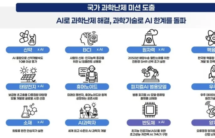 AI로과학기술연구가속화5년내에연구생산성2배목표12개국가미션정해역량결집강력권한가진PD가과정총괄정부가인공지능(AI)으로12개과학기술난제를해결하는‘K-문샷’프로젝트를추진한다.[자료=과학기술정보통신부]정부가인공지능(AI)역량을결집해과학기술국가난제에도전하는‘K-문샷’프로젝트를추진한다.미국의‘제네시스미션’과유사한내용으로,5년내에연구생산성을2배로높이겠다는도전적인목표도내놨다.국가AI전략위원회는25일개최한제2차전체회의에서‘AI시대과학기술경쟁력대도약을위한K-문샷추진전략’을의결했다.AI를중심으로과학기술도빠르게변화하는만큼,정부도산학연에흩어진AI역량을총동원해최근흐름에대응하겠다는방침이다.구글이AI로단백질구조와DNA염기서열을예측하는등전세계과학계는AI를활용해새로운발견을이어나가고있다.AI를활용하지않으면과학기술경쟁력이뒤처질수밖에없는상황이다.정부는이번전략으로5년내에연구생산성을2배높이겠다고했다.피인용상위1%논문점유율을2023년4.1%에서2030년8.2%로높여세계5위수준에들겠다는것이다.김성수과학기술정보통신부연구개발정책실장은“한국과학기술이양적으로성장하는반면,질적성장이아직부족해AI와융합해키우겠다는것”이라고했다.전략은국내AI자원관리부터연구개발(R&D)체계까지종합적인내용을담고있다.우선정부는산학연의그래픽처리장치(GPU),AI모델,연구데이터등을통합해서관리할플랫폼을구축한다.슈퍼컴6호기와정부구매분등을합해GPU8000장이상은과학기술연구에활용한다.신설되는‘국가과학AI연구센터’가플랫폼구축과운영을맡는다.센터는과학적탐구의전과정을AI가수행하는‘자율형AI과학자’를구현하는데주력한다.AI와기타과학분야의최고급전문가를초빙하기위해보수나인사체계도탄력적으로운영할계획이다.산학연은자원만공유하는게아니라,공통의미션을달성하기위해전단계에서협력하게된다.예를들어대학이연구데이터를제공하고,출연연이연구하고,기업에서기술실증이이뤄지는식이다.정부는신약,원자력,우주,양자,반도체등12개미션을3월중확정할계획이다.미국의제네시스전략이가진미션의절반보다적지만,우리가가진강점에선택과집중을했다는게정부측설명이다.미션은국가경쟁력확보에필요한것을중심으로설정될예정이다.예를들어원자력은‘친환경소형모듈원전(SMR)선박구축’,양자는‘완전국산양자컴퓨터개발’처럼구체적인미션이나올것으로보인다.산학연은미션에맞춰서로협력하게된다.방대한조직이도전적인목표를추구하는만큼,미션당한명의PD(프로그램디렉터)가지정되어전체R&D를관리하게된다.PD한테는전과정을아우르는강력한책임과권한이부여된다.과기정통부관계자는“진행상황에따라PD가연구중단을선언할수있을정도의권한이있을것”이라고했다.‘K-문샷’이라는새로운R&D과제가나오기보다는기존사업중성격과규모가비슷한것들을모아새로운관리체계를적용하는방식이검토되고있다.새로운과제가생기면기존과제들과예산경쟁을해야하고,R&D체계가더복잡해지기때문이다.한계도전형과제처럼높은성과를요구하고규모가큰사업들일부가‘K-문샷’에편입될것으로보인다.일각에서는12명의전문가가PD로선발되면각자도생이벌어져추후혼란이벌어질수있다는우려도나온다.이에대해과기정통부는“배경훈과기부총리가직접컨트롤타워역할을맡아긴밀하게협의할것”이라고했다.PD는과학기술관계장관회의에참석해직접진행상황을설명하고,향후운영방향을논의하게된다.Copyright©매일경제&mk.co.kr.무단전재,재배포및AI학습이용금지