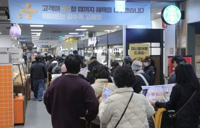 삼삼데이앞두고롯데·이마트'맞불'평일오전부터800kg물량60%소진초저가경쟁속얇아진소비풍경26일오전9시40분께롯데마트제타플렉스잠실점입구에는'오픈런'을대기하는주부들로문정성시를이뤘다.개점까지는20분남짓.셔터가내려진출입문앞에카트를끌던대기줄일부는이미10여분전부터자리를지키고서있었다.대기행렬은가정에서챙겨온광고전단을보며쇼핑품목을미리살펴보는모습도관찰됐다.오늘의'미끼상품'은삼겹살.100g에990원이다.개점시간이다가올수록대기행렬은길어졌다.인근신천동에서온50대주부장모씨는"요즘삼겹살1kg사려면2만원은훌쩍넘잖아요.고등학생,대학생아들둘을둔4인가정이라식비가만만치않아오늘은작정하고아침일찍왔어요"라고말했다.이마트용산점개점시간에맞춰'오픈런'을하기위해줄서있는고객들모습.이마트는이날부터3월4일까지삼겹살100g당880원을비롯해인기품목을최대50%특가에판매하는'고래잇페스타'를마련했다.신세계.얇아진지갑사정을반영하듯,대기줄에선고객들의표정은단호했다.장을보러나왔다기보다는'기회를놓치지않겠다'는비장함도느껴졌다.삼전동에서온30대성모씨는"사실어제저녁식사시간이후방문했다가허탕을쳐오늘은아침일찍나왔다"고전했다.'삼겹살=비싼외식'이라는공식이자리잡은고물가시대.한국인의식탁에서빼놓을수없는주재료삼겹살의체감가격상승세는만만치않다.실제로한국농수단식품유통공사(aT)에따르면23일기준돼지고기1+등급도매가는1㎏에5371원(100g당571원)으로평년대비18.3%,전년대비5.43%올랐다.소매가도덩달아올랐다.같은기간축산물품질평가원에따르면삼겹살소매가는100g당2678원으로평년대비13.6%,전년대비5.43%상승했다.외식물가는더부담스럽다.서울시내식당에서판매하는삼겹살은100g기준7000~8000원에육박한다.4인가족이외식을하면7만~8만원수준이다.직원이셔터를올리며개점을알리자카트를끌고대기하던주부들은일제히정육코너로직진했다.돼지고기100g당990원이라는저렴한가격임에도불구하고,과도하게비계가많거나품질이떨어지는상품은보이지않았다.롯데마트제타플렉스잠실점에서개점시간에셔터가올라가자마자입장하는고객들.권재희기자.롯데마트는삼삼데이(3월3일·삼겹살데이)를맞아돼지고기를100g당990원이라는저렴한가격에준비했다.전국점포에서고객수요에충분히대응할수있도록450t이상의삼겹살물량을준비했다.특히990원행사를진행하는수입삼겹살의경우지난해대비2배넘게물량을확대한250t이상규모로마련해,조기품절없이최대한많은고객이초특가상품을구매할수있도록기획했다.롯데마트는20일부터25일까지990원수입삼겹살1차행사를선제진행했으며,실제로이기간동안수입돼지고기매출과객수는모두전년대비2배이상증가한것으로파악됐다.롯데마트제타플렉스잠실점의경우이날800㎏이상의당일행사물량을준비했으나,오후2시기준60%이상물량이판매됐다.주부들의장바구니는삼겹살을비롯해주로식료품,생필품등에초점이맞춰졌다.파격행사라고는하지만얇아진지갑과고물가가이어지고있는가운데소비심리위축을반영하듯장바구니에는할인항목위주로담겼다.성내동에서온40대주부김모씨의장바구니에는우유,삼겹살,딸기등이담겼다.우유는다른브랜드우유보다더저렴한PB제품으로,삼겹살과딸기는행사상품이다.김모씨는"행사상품이아니면손이선뜻가지않는다"며"요즘은새벽배송도잘되어있고,무료배송기준도높지않아늘핸드폰으로꼼꼼하게살펴보고100원이라도저렴한것을고른다"고말했다.롯데마트제타플렉스잠실점돼지고기100g당990원행사매대에고객들이모여있는모습.권재희기자롯데마트제타플렉스잠실점관계자는"삼겹살과함께즐길수있는버섯,쌈채소,마늘등은물론주류등구이와함께즐길수있는관련상품을담는고객들이많았다"며"'통큰데이'시작과함께매장전반에활기가느껴지고있다"고말했다.같은날행사를시작하는이마트의경우롯데마트보다110원더저렴한돼지고기100g당880원으로맞불을놨다.이마트용산점에는이른아침부터입구앞에긴줄이늘어서는등진풍경이펼쳐졌다.점심시간이지난오후2시까지도인파들로북적였다.인근효창동에서온50대여성정모씨는카트에삼겹살을담다말고'1인당2팩'제한문구를보고직원에게"가족1인당2팩씩나눠계산해도할인이적용되느냐?"고문의하기도했다.정씨는"100g당천원도안하는가격은처음이라서요"라며함께온남편과각각두팩씩챙겨카트에담았다.남영동에서온또다른50대여성이모씨는"인근에다른마트도할인행사를한다는전단을봤지만,조금이라도더저렴한이곳으로왔다"며"삼겹살과목살만사러왔는데,평소라면선뜻손이가지않을상품들도행사상품들이많아이기회에이것저것담아봤다"며웃었다.이마트용산점의돼지고기행사매대.권재희기자.100원단위의초저가행사가경쟁적으로이어지고있지만,온기가전체로퍼지지는않는모습도보였다.와인및수입치즈진열대등일부매대는한산하기도했다.대형마트업계에서집객을위한최저가경쟁이반복되고있지만,소비가넓게퍼지지는않는모습이다.'선택과집중'이고물가시대장바구니공식으로굳어졌다.유통업계관계자는"객단가는줄고,행사상품쏠림은더심해졌다"며"사실마트간차