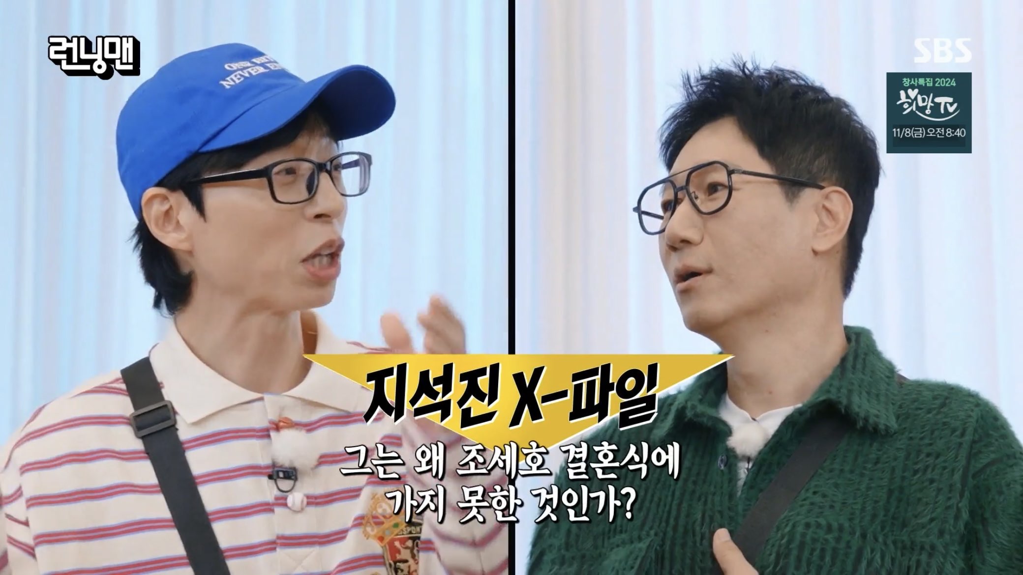 (엑스포츠뉴스임나빈기자)지석진이조세호결혼식에불참한이유를밝혔다.3일방송된SBS예능'런닝맨'에서는6일개봉을앞둔영화'청설'의주역홍경,노윤서,김민주가게스트로출연했다.이날오프닝에서는'런닝맨'전날있었던조세호의결혼식비하인드에대한대화가오갔다.유재석은"어제세호결혼식에서도종국이가옆에나단이앉혀놓고계속갈구더라"라고말했고,이에김종국이"축의금얼마하지도않고겁나쳐먹더라"라고해폭소케만들었다.유재석은다음으로"형하객자리에형이름있었는데없더라고?"라고지석진에물었고,김종국은"형노쇼더라"라며불참이유를궁금해했다.이에지석진은"노쇼가아니야!미리얘기했어.세호한테전화해서"라며노쇼가아니라고강력부인했다.유재석은"그럼형은어제뭐했냐?"라며질문했고,지석진은"국가적인(?)일이좀있었다.제입으로는말을못한다.여러사람이다친다.국빈들이좀오셔서맞이하러갔다.상암쪽에서볼일이좀…"이라며얼버무렸다.이를들은멤버들은몹시의아해했다.뭔가생각난듯한김종국은"축구보러간거냐?"라고물었다.지석진은"아주절친한친구가있다.그친구(김용만)가축구채널을하지않냐.유튜브같이찍자고해서간거다.세호는800명이와서내가없어도티가안난다.근데용만이는옆에내가없으면티가난다"라고해명했다.이후홍경,노윤서,김민주가등장했고,'런닝맨'멤버들은이들을박수로맞았다.특히이전에'런닝맨'에출연한바있는노윤서에지석진은친근함을표하며"가족같다"라고말했다.하하는"너미술했잖아.그리고나너한테맞팔까였잖아"라며폭로했다.이에노윤서는어쩔줄몰라했다.지상파예능첫출연인홍경은긴장이된듯덜덜떨었고,자기소개를하라는멤버들의말에냅다허리를숙여인사해웃음을자아냈다.사진=SBS임나빈기자[email protected]©엑스포츠뉴스.무단전재및재배포금지.