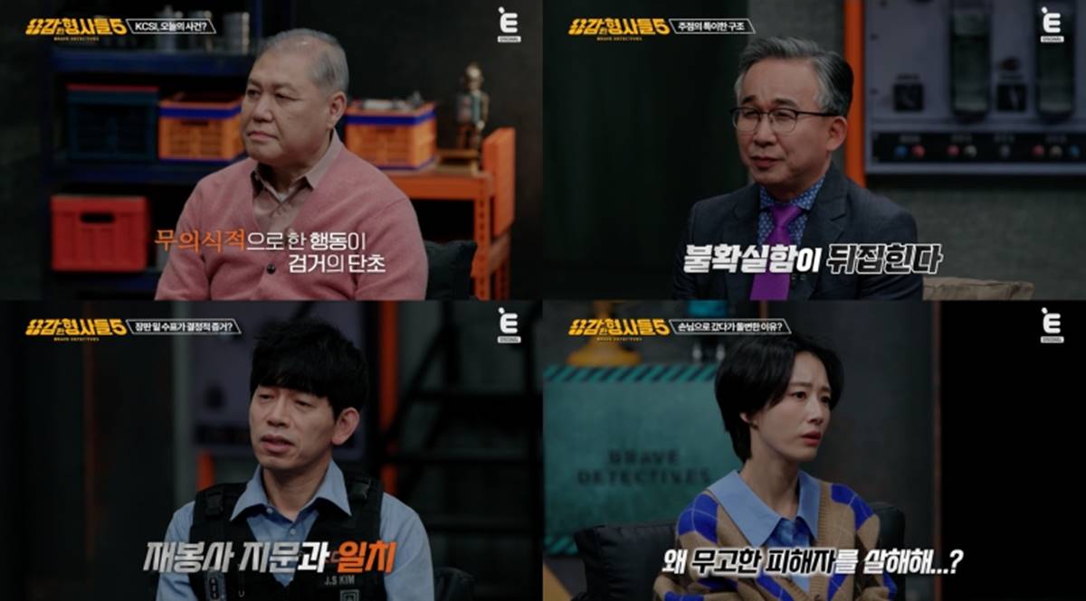 E채널'용감한형사들5'방송화면.(엑스포츠뉴스황성운기자)"무시했다"는이유로주점여사장을살해한범인은평소'피해자의습관'때문에잡을수있었다.24일방송된티캐스트E채널'용감한형사들5'(연출이지선)5회에는안동경찰서김용호전형사,영주경찰서여성청소년수사팀황규환경감과과학수사대(KCSI)윤외출전경무관,김진수경관이출연해수사일지를공개했다.이날KCSI가소개한사건은피해자의습관이범인을잡아낸사건.파출소순경이야간순찰중주점안에서사망자를발견하며사건이시작됐다.사망자는50대주점여사장.피해자는바닥에무릎을꿇고,소파에얼굴을묻은채엎드린상태로발견됐다.곳곳에는미처치우지못한흔적이남아있었고,내실에서는서랍하나가통째로빠져있었다.바닥에서는260mm사이즈의구두족적이발견됐다.현장에서채취된지문중또렷한지문두점이확인됐다.한사람은마약전과자,다른한사람은전과14범.마약전과자지문은진열된양주병에서발견돼사건당일방문가능성은낮았고,전과14범의지문은손님테이블유리컵에서발견됐다.자진출석한전과14범은술집에갔을때자신의대각선테이블에다른남성손님이있었고,피해자가그의눈치를보는것같았다고진술했다.하지만단서는예상치못한곳에서나왔다.바로피해자의습관.알고보니피해자는매상을곳곳에숨겨두는'독특한'습관이있었던것.주점을재수색한결과장판아래에서10만원수표한장이발견됐고,발행일은시신발견전날이었다.수표에적힌이름이제대로보이지않았고전화번호와성만확인됐다.추적결과,수표는동대문에서가방을도매로팔고있던30대남성이인출해거래처열곳에물건값으로지불한것이확인됐다.거래처사장들은대부분직원들의월급으로지급했던가운데,가방공장사장이최근재봉사한명이월급을받은다음날부터출근하지않았다고진술했다.해당재봉사는수표에적힌성과일치한32세의남성이었다.조회결과전과6범이었으며현장에서발견된쪽지문과도일치했다.신발사이즈역시260mm로확인됐다.긴급체포된재봉사는범행을부인했지만,지문과수표,족적증거앞에서결국범행을인정했다.그는피해자가자신을무시했다고느껴범행을저질렀다고주장했다.함께술을마시던중다른손님에게자리를옮긴것에대해따졌더니피해자가뺨을때렸고순간적으로범행을저질렀다는것.또한내실서랍을뒤진이유는술값30만원을되찾으려뒤진것이라진술했다.결국그는살인,절도혐의로징역12년을선고받았다.매주금요일오후9시50분에방송.황성운기자[email protected]©엑스포츠뉴스.무단전재및재배포금지.