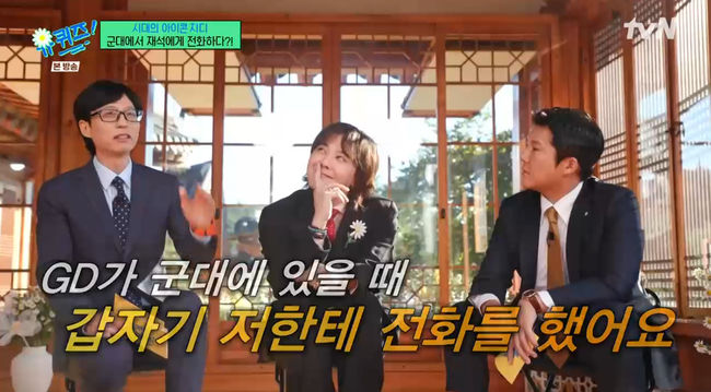 tvN‘유퀴즈온더블럭’캡처tvN‘유퀴즈온더블럭’캡처tvN‘유퀴즈온더블럭’캡처[뉴스엔서유나기자]빅뱅지드래곤(권지용,GD)이태양단독콘서트에서'굿보이'무대를선보이게된비하인드를공개했다.10월30일방송된tvN예능'유퀴즈온더블럭'(이하'유퀴즈')267회에는지드래곤이게스트로출연했다.이날유재석은최근태양콘서트에서선보인'굿보이'(GoodBoy)합동무대를언급했다.유재석은"오랜만에태양이랑보니너무멋있더라"고칭찬했고,조세호는팬들도예상못한무대였지않냐고물었다.지드래곤은팬들은물론"저도제가무대에올라갈걸예상못했다"며"약속을따로하진않았다.태양이가저랑오랜친구다보니까저를잘다룬다.성질을약간씩긁는다.제가청개구리같은게있다.'왔는데뭐안올라와?안올라오면말고.부담주는거아니고'라고하니까전혀생각없다가,오랜만에갔더니분위기가좋더라.큐시트를혹시몰라봤다.이미마이크가다준비되어있더라.기념비적이기도하고기분도좋고저희팬분들이오셨을테니까(했다)"고밝혔다.이어"오랜만에나가는거라저도조금멋있고싶잖나.'오늘도친구들이왔어'라며멋있게나가는데눈이마주쳤는데이친구들이저를아주아기다루듯이(하고있더라).저는멋있게하고싶었는데.제가하다가도순간당황해서같이바운스를타야하나,난나대로가야하나(고민했다)"고토로했다.그래도"재밌었다"고소감을밝힌지드래곤은"이제둘다'보이'도아니다.사실.제가'배드보이'(BADBOY)도해보고'굿보이'도해봤는데보이가아니다.(이제는)'굿가이','굿맨'"이라고너스레떨었다.한편지드래곤이소속된그룹빅뱅은2006년데뷔했다.승리와탑의탈퇴후지드래곤,태양,대성3인조로활동중이다.세사람은지난9월열린태양단독콘서트에서'위라이크2파티'(WeLike2Party),지드래곤과태양은유닛곡'굿보이'무대를선보여화제를모았다.뉴스엔서유나stranger77@기사제보및보도자료[email protected]ⓒ뉴스엔.무단전재&재배포금지Copyright©뉴스엔.무단전재및재배포금지.