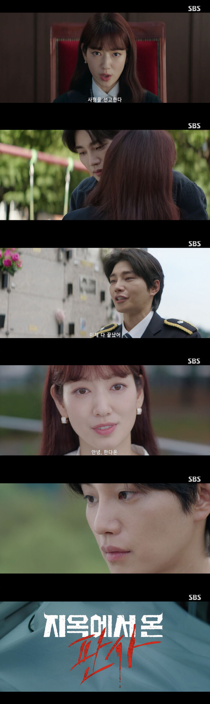 [SBS연예뉴스|김효정에디터]박신혜가김재영을떠나소멸할것을택했다.1일방송된SBS금토드라마'지옥에서온판사'(이하'지옥판사')에서는한다온의곁을떠난강빛나의모습이그려졌다.이날정태규에대한판결선고에앞서강빛나는한다온에게어떤판결을내리든자신을미워하지도원망하지도않겠다고약속해달라고했다.그리고그럼에도불구하고너무미우면그땐자신을잊으라는것.이에한다온은걱정말고소신대로판결하라며강빛나를응원했다.그리고판결선고날강빛나는모두의예상과다른선고를했다.강빛나는"피해자와피해유가족들이용서하지않는죄는법또한용서하지않는다"라며정태규에게사형을선고한것.강빛나의판결에유족들은안도했고한다온은고마움을감추지못했다.그리고한다온은강빛나와함께가족들의납골당을찾아가족들에게선고결과를알렸다.그는"우리나중에다시만나면꼭서로알아봐야되니까잊지않을게.그때까지씩씩하게잘살고있을게"라며가족들에게약속을했다.징역15년형을선고받은정선호는강빛나에게무언가를전달했다.그리고강빛나는그의부탁대로이를장명숙에게전달했다.정선호가부탁한것은장명숙의아들이남기고간것이었다.장명숙의아들은장명숙에게"내가빨리얼른어른돼서효도하고엄마고생안하게할게"라는편지와함께바셀린로션을준비했던것.이에장명숙은아들에대한그리움으로오열해안타까움을자아냈다.이후정선호는스스로목숨끊었고,정태규는특별귀휴를신청하며탈옥을계획했다.그리고강빛나는죽음으로사죄하라는악마에게조금만시간을달라며마지막으로할일이있다고했다.마지막으로강빛나가향한곳은한다온.그는한다온에게"형사님울리는사람들다잡아죽이고싶었고,이제는울일없이행복하게만해주고싶었다.그런데그약속못지키게됐다.멀리떠나게됐다"라고했다.이어강빛나는"내삶의유일한오점유일한약점,많이사랑했다한다온"이라며자신의진심을전했고한다온에게입을맞추었다.그리고또보자는한다온에게"안녕한다온"이라고인사를전했다.강빛나의결정을뒤늦게알게된이아롱과구만도는한다온을찾았고,강빛나가죽게생겼다며소식을알렸다.스스로소멸을선택한강빛나.그는악마의칼을맞고그대로쓰러졌고뒤늦게도착한한다온이그를급히병원으로옮겼다.하지만강빛나는그대로사망해이후어떤전개가펼쳐질지다음이야기를궁금하게만들었다.Copyright©CopyrightⓒSBS.Allrightsreserved.무단전재,재배포및AI학습이용금지