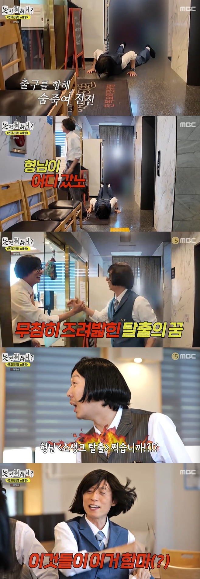 MBC놀면뭐하니[티브이데일리황서연기자]'놀면뭐하니'에서유재석이동생들앞에서추태를보였다.25일저녁방송한MBC예능프로그램'놀면뭐하니'에서는'쩐의전쟁3in통영'특집이펼쳐졌다.이날유재석하하주우재양상국은통영출신허경환의안내에따라통영관광에나섰다.이과정에서발생하는관광비,교통비,식사비등을두고신경전이벌어졌다.케이블카와카트게임비용을선결제했던허경환이카트게임에서패배해30만원이상돈을낸가운데,5명은긴장감을안고식당으로향했다.식사를하면서도물밑작전이계속해오가던와중,유재석이음식을옷에쏟아정장이젖게됐다.식사는마무리단계였고,유재석은옷을닦겠다며가게밖화장실로향했다.주우재가유재석의동태를확인하러가겠다며밖으로나선가운데,유재석은실제로돈을내지않고도망치기위해가게문앞에엎드려있었다.주우재는유재석을찾는척화장실로향하며유재석의등을수차례밟고지나갔고웃음이터졌다.'바닥을기는예능인브랜드평판1위'라는자막이더해져웃음을더했다.유재석은결국동생들의야유를들으며식당으로돌아왔고,변명을내놓았지만통하지않았다.결국유재석은"이XX들이"라고외치며민망함을숨기려했고,결국식사비용을걸고병뚜껑멀리보내기대결이펼쳐졌다.[티브이데일리황서연기자[email protected]/사진=MBC]놀면뭐하니[Copyrightⓒ*세계속에新한류를*연예전문온라인미디어티브이데일리(www.tvdaily.co.kr)/무단전재및재배포금지]Copyright©티브이데일리.무단전재및재배포금지.