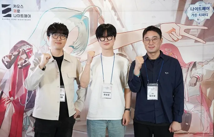 6개월동안의끝없는피드백반영,개선작업이성과를보여김기범,슈퍼크리에이티브카제나전투담당,최승현슈퍼크리에이티브카제나디렉터,김주형스마일게이트카제나사업실장스마일게이트'카오스제로나이트메어'가어느덧출시반주년이라는중요한이정표를맞이했다.독창적인로그라이크덱빌딩시스템으로기대를모았던게임인만큼지난6개월은개발진에게도,유저들에게도수많은도전과피드백이오간치열한시간이었다.이번반주년업데이트는단순한기념행사를넘어게임의체질을개선하고새로운도약을준비하는'전략적변곡점'을예고하고있다.신규로그라이크콘텐츠'출격'부터매력적인두번째시즈널캐릭터'하이데마리'그리고글로벌오프라인이벤트까지전개한다.그결과개발진은"이제야당당하게결과물을보여드릴수있을것같다"는자신감을표했다.이에최승현라이브디렉터,김주형사업실장,김기범전투담당자를만나그간의소회와앞으로의청사진에대해자세한이야기를들어봤다.Q.출시후여러이슈가있었지만어느덧반주년까지왔다.가장기억에남는순간을꼽는다면?최승현라이브디렉터:그저앞만보고달려왔다는생각이든다.그과정에서미처챙기지못한부분들에대한아쉬움이항상남아있다.방송을할때마다죄송하다는말씀을드렸지만,당당하게결과물을보여드리지못한점이특히아쉬웠다.이번반주년을변곡점으로삼아앞으로는보다자신감있게콘텐츠를선보일계획이다.Q.오프라인에서유저를직접만나는것이부담일수도있는데,오프라인이벤트를개최한계기는무엇인가?향후계획도궁금하다.김주형사업실장:출시전후로오프라인에서미디어와유저를만나는자리를준비해왔지만여러사정으로진행이쉽지않았다.그러다반주년을계기로본격적으로추진하게됐다.현재는국내뿐아니라일본,대만에서도컬래버카페를운영중이며,앞으로도다양한오프라인이벤트를통해유저들과의접점을확대해나갈예정이다.Q.반주년행사기간동안유저들과직접소통할계획이있는가?최디렉터:현재시즌3업데이트준비에집중하고있는상황이지만,유저분들의요청이많다면최대한시간을내어직접만날수있는자리를마련하고싶다.김실장:방송을통해디렉터를직접만나보고싶다는의견이많았던만큼,현장에서의소통도기대하고있다.Q.한국외일본,대만에서컬래버카페는어떻게진행하고있나?아울러오프라인에서추후어떻게유저들과만나고자하는지계획을좀더상세히말하자면?김사업실장:일본에서는이틀전부터컬래버카페를오픈했다.그곳에서도코스어를초청하고굿즈를판매하는중이다.대만에서는24일부터장기간컬래버카페를오픈한다.북미에서는오는7월LA에애니메엑스포에참가,유저들과직접만나소통하는자리를마련하고자한다.카오스제로나이트메어시장님...ㅎㅎQ.반주년이단순행사를넘어서전략적변곡점이될것이라고했다.통상1주년을그기점으로꼽지않나?반주년을기점으로언급한이유는?추가로IP확장과유저확보를위해어떻게준비하고있나?김실장:이번반주년은게임성이크게바뀌는기점이라고생각하고있다.올해초부터개발진이준비하고있던것들이개화하는시기이기때문이다.1주년이아닌반주년인이유는,유저들에게좀더빠르게그변화를선보이고싶어서였다.이번반주년은단순보상을많이주는것을떠나서,카제나의로그라이크게임플레이를강화하는출격콘텐츠를비롯해신규캐릭터와편의성개선까지전체적인부분에서개편을준비했다.기존유저뿐만아니라신규,복귀유저모두만족할수있는업데이트라생각한다.Q.TCG,보드게임,애니메이션등으로외부IP확장에대해서도계획하고있는가?김실장:게임내적인것을개선하는것이최우선이다.물론IP확장또한중요하다다.1차적으로회사에서제공하는오프라인이벤트나굿즈가있다.더나아가유저들이직접IP를토대로2차창작을활성화하는문화를만들어가고싶다.이번계기를통해서굿즈를제공하는것외에2차창작이더만들어질수있도록여러창작자를지원하고리소스를공개하는등유저와함께나아가는IP로만드는것이목표다.Q.반주년을맞아서새시즈널캐릭터인하이데마리를선보인다.특장점을더자세하게설명한다면?추가로두시즌간격으로시즈널추가계획인건가?김기범전투담당:하이데마리의특장점은극광검이라는전용카드를생성해서공격하는것이다.세레니엘과유사하게보일수도있으나,세레니엘의주요메커니즘은'격파'이후호밍레이저를핸드로불러와서연타로딜을하는방식이다.반면하이데마리는카드를반복해서사용하는방식이아니라,디아나때선보였던'안식'과신규키워드'연결'을활용해카드를한번에무덤에보내면서동시다발적으로효과를발동,연타로몰아치는딜러다.세레니엘의페일슈팅스타못지않게강력한피니시카드도있고,드로우능력까지갖추고있어다양한파티에서활용할수있으리라생각한다.또한시즈널루틴을말하자면,시즈널캐릭터는은하계재해시즌에귀속된것이아니라축제혹은기념비적인날에맞춰서내고자한다.Q.방송을보니디아나가하이데마리의파츠로예상된다.그러나반주년에지급하는5성선택권에는디아나가포함되어있지않다.신규유저들이선택권을어떻게활용해야할까팁을주자면?김실장:디아나는질문대로하이데마리와연계하도록설계했다.그