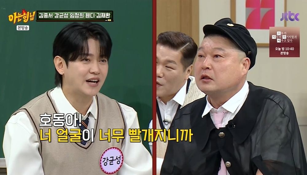 [TV리포트=남금주기자]노을강균성이강호동에관해폭로했다.25일방송된JTBC'아는형님'에서는김종서,노을강균성,임정희,레드벨벳웬디,워너원김재환이출연했다.이날강호동은10년전출연했던강균성을떠올리며"너대단했어"라고밝혔다.강균성은"그때내가넘심하게한게아닌가많이염려됐다"고걱정했지만,이상민은"네행동덕분에'아는형님'콘셉트가(정해졌다)"고말하기도.강호동이"난그때균성이눈빛이무서웠다"고토로하자강균성은뿅망치를꺼내들었다.멤버들없이혼자출연한웬디와김재환.먼저김재환은"멤버들과같이나오면기댈곳이있는데,오늘은같이나온선배님들께기대겠다"라고밝혔다.웬디는"멤버들없어서긴장도되지만,기대도된다"라고밝혔다.이에강호동은"나상담해주면서눈물흘리게하지않았냐"라며당시웬디의칭찬폭격에눈물을흘렸던걸떠올렸다.강균성은임정희와의인연에관해"JYP패밀리라연습생때부터봤다.정희는노래1등,예쁘고,성격도좋다.그래서연습생들사이에선정희를좋게볼수밖에없었다"고칭찬했다.그러자김종서는"이렇게착하고좋은정희인데,악연이있다"고밝혔다.임정희는"'복면가왕'에서내가6연승을하고있었다.대결상대로종서가나타나서날이겼다"라고인연을전했다.그런가운데강균성은'돌고래'란별명에관해"노을멤버가4명인데,어쩌다항상가장높은음역대를맡게됐다"라고설명했다.서장훈이"난앞에'돌'자가있어서'돌아이'인줄알았다"고하자강균성은"여기도'돌'자들어가면어울릴사람많지않냐.돌싱"이라고밝혔다.이에서장훈은고개를돌리며"오케이.알았어"라고했고,강호동에게괜히"왜이렇게좋아하는거야?관심있어?궁금한거있어?"라고공격했다.강균성은강호동을향해"얼굴너무빨개지니까가공육같다"라고했고,강호동은"내가가공육소리를듣나"라고충격을받았다.이어강균성은강호동이했던프로그램들을언급하며"레전드이지않냐.그때도많이가공되게했다.PD들이알아서다밥상차려주면네가가공육맛있게먹지않았냐"라고몰아갔고,강호동은결국"무슨소리인지모르겠다"라며"난받아먹기만했다고?"라고밝혔다.남금주기자/사진=JTBC'아는형님'Copyright©TV리포트.무단전재및재배포금지