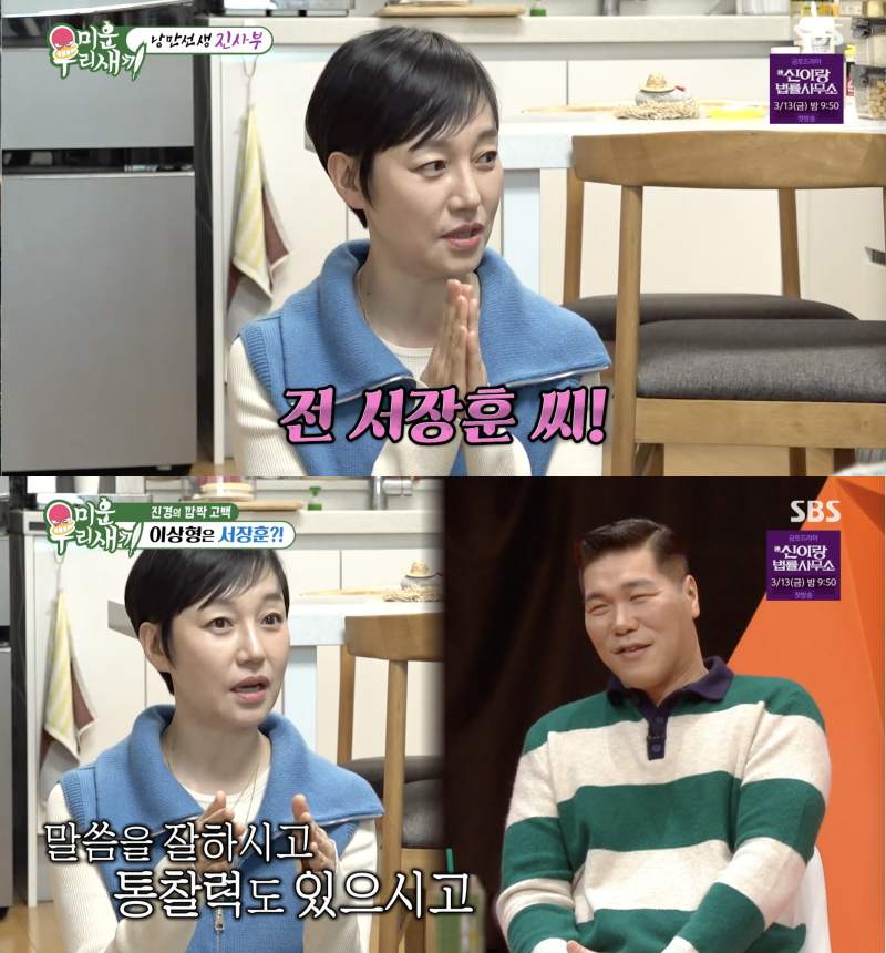 [스포츠조선이지현기자]배우진경이방송인서장훈을이상형으로꼽았다.1일방송된SBS예능프로그램'미운우리새끼'(이하'미우새')에는진경이임원희의집을찾았다.진경과임원희는드라마'낭만닥터김사부'시리즈에서이혼한부부사이를연기했다.이에신동엽은"두분다다녀오셨다"라며돌싱임을언급했다.몇년전한예능에서돌싱임을밝힌진경은"다들내가싱글인줄알아서거짓말쟁이가된것같았다"고털어놓았다.그런가하면,이상형을묻는질문에진경은"나이가들수록다정하고말을예쁘게하는사람이좋다"고답했다.그러면서도"연예인중에꼽는다면"이라는질문에"서장훈씨"라고답해모두를놀라게했다.진경은"너무지혜로우신것같다"면서"요즘'이혼숙려캠프'를즐겨본다.거기서서장훈씨가말씀을잘하시고통찰력이있으시다.사람을읽어내는능력이대단하다"고이야기했다.이를들은신동엽은서장훈을꼭안아웃음을더했다.이어진경은"그분은재혼안하시나,연애안하시나"라는말을더해설렘을안겼다.이를질투한임원희는"서장훈의결벽증견디실수있나"라고물었고,진경은"그래안되겠다하고접었어요"라면서"근데내가그분앞에서독설을못할것같다.나도사람봐가면서하지"라고이야기해웃음을안겼다.그럼에도서장훈은"감사드립니다.진경이누나고마워"라는영상편지를남겨눈길을끌었다[email protected]©스포츠조선.무단전재및재배포금지.