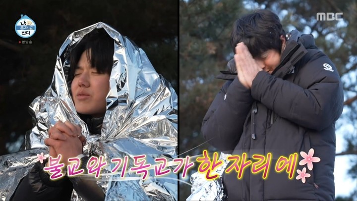 전현무"누구말을들어줘야하나헷갈리실듯"웃음(MHN박선하기자)강추위속해돋이를기다리던기안84와데이식스도운이각자의종교에소원을빌며웃음을안겼다.30일방송된MBC예능'나혼자산다'(이하'나혼산')에서는기안84와도운은해돋이를보러새벽에산정상에올라기다렸다.두사람은예상밖의강추위에말이어눌해지고정신까지혼미해지는모습을보여웃음을자아냈다.생각보다이른등산에해가뜨기까지시간이남은상황.기안84는"태양이동그래야된다는선입견을버리면돼"라고했고,도운도"그니까요다떴네"라고맞장구치며"소원을빌자.형님은부처님한테빌고,저는하나님한테빌겠다"고제안했다.이어두사람은불교와기독교로각자다른종교에기도를했다.도운은"아멘"이라고기도를마쳤고,기안84는"부처님나무아미타불"이라며기도했다.이를지켜보던전현무는"헷갈리시겠다.누구말을들어줘야하나"라고농담했고,도운은"위에서는아마다친하실거예요"라고받아쳤다.사진='나혼자산다'방송화면Copyright©MHN.무단전재및재배포금지.