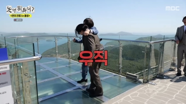 하하(엑스포츠뉴스명희숙기자)하하가고소공포증으로인해생리현상을참지못했다.25일방송된MBC예능프로그램‘놀면뭐하니?’('놀뭐')는‘촌놈들의전성시대-쩐의전쟁3in통영’편이전파를탔다.이날유재석,하하,주우재,양상국은‘통영스타’허경환의초대로통영을방문했다.허경환은멤버들에게통영구경을시켜주기위해케이블카에함께탔다.케이블카를타고정상에올라스카이워크및전망대구경을했다.양상국은먼저바닥이투명한유리로된스카이워크에걸어가통영을내려다보며"죽인다"고감탄했다.그는멤버들에게도"진짜예쁘다.거기서는안보인다.여기까지와야보인다"며함께와서보자고제안했다.하지만겁이많은하하와유재석은쉽게움직이지못했다.이에주우재는"형님들은케이블카비용내기에서빼줄테니까난간끝에가서셀카찍으라"고제안했다.유재석은"하하야해보자.이것들이우리를진짜우습게본다"며도전을결심했다.하하는"그럼너희들은다가오지말아라"라고경계했고,허경환은"알았다.멀리있겠다"고했다.양상국은"이거3분안에안하면무효"라고했고,하하와유재석두사람은성큼성큼난간으로다가섰다.하지만유재석은"우직소리가났다.하하네소리냐.너방귀꼈냐.너그러다싼다"며웃음을터뜨렸고,하하는"나못하겠다"며"나안되겠다.내가성인인데싸면안되지않겠냐"고도전을포기해웃음을자아냈다.사진=MBC방송화면명희숙기자[email protected]©엑스포츠뉴스.무단전재및재배포금지.