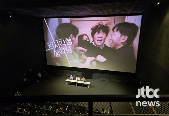 배우박해수가이희준감독의연출작'직사각형,삼각형'GV에참석해모더레이터로활약했다.〈사진=JTBC엔터뉴스〉배우박해수가이희준감독의연출작'직사각형,삼각형'GV에참석해모더레이터로활약했다.〈사진=JTBC엔터뉴스〉감독이희준을응원하기위해그의선배,후배,동료들이앞다퉈극장으로향했다.이희준은지난달21일개봉한영화'직사각형,삼각형'을통해감독으로두번째연출작을내놨다.작품은좋으려고모인가족모임에서해묵은갈등이하나둘수면위로드러나며벌어지는이야기를그린다.이희준감독은일상적인관계속충돌을날카롭고도유머러스하게포착해현실적인가족의얼굴을스크린에담아냈다.단편에이어중편을내놓은이희준감독의장편데뷔작을기다리고기대하게만든다.러닝타임45분의중편영화는제26회전주국제영화제공식초청작으로선정돼그작품성을먼저인정받았다.이에공식개봉까지성사됐지만일반적인상업영화만큼스크린을할당받기에는어려움이있었던바,이에홍보와상영의일환으로N차GV를강행,이희준과인연을맺은많은배우들이흔쾌히참석을결정하면서관객과의만남이추진됐다.개봉일GV를시작으로,'직사각형,삼각형'은그간박해수송중기이성민김성철최우식김민하이재욱한가인박진영임시완까지총10명의배우와함께GV를진행했다.사이사이영화에직접출연한오용오의식권소현이참여하기도했다.배우들은유쾌한소동극을그린영화관람소감과함께,감독이희준의연출력에대한감상평,그리고현실적인스토리에대한개인에피소드까지편안한분위기에서관객들과소통했다.특히이희준의부름에한달음에달려온박해수는자청해모더레이터로깜짝활약을펼치기도."제가원래말을잘못하는데,역대급으로잘하는것같다"고흡족해한그는끝까지청산유수입담을뽐내며화기애애한분위기를완성했다.또한감독과배우로호흡맞춘오용과오의식은"현장에서과하다싶을만큼준비를굉장히철저히하는배우인데,감독으로서도그노력이발현되더라.배우때와는또달랐던유연함에놀라기도했다"는후일담을남겼다.로만폴란스키의'대학살의신'과법륜스님의'직사각형삼각형'강연,그리고실제처갓집에서나눴던설거지와제사이야기등경험담을절묘하게녹여낸영화는감독이희준의연출세계와흥미로운관심사를엿보이게한다.이희준은"법륜스님강연을처음들었을때어떤깨달음을얻은것처럼'이러면누가화내고싸우겠어.난이제행복하다!'수준에이르렀다.근데그게이틀밖에안가더라.108배도10년째하고있다"고털어놔웃음을자아냈다.이어작품에대해"저렇게싸우고그럼에도불구하고누구하나헤어지지않고다음주에또만나'아이고형님'할한국가족만의특징을담아보고싶었다"며"개인적으로는배우를하는게훨씬좋은데,연출은제가재미있어하는이야기를만들고,보면서다른분들도함께웃고감동할수있게한다는것,공감을나눌수있다는점이배우로서는할수없는경험이라의미있다"는마음을표했다.조연경엔터뉴스팀기자[email protected](콘텐트비즈니스본부)Copyright©JTBC.무단전재및재배포금지.
