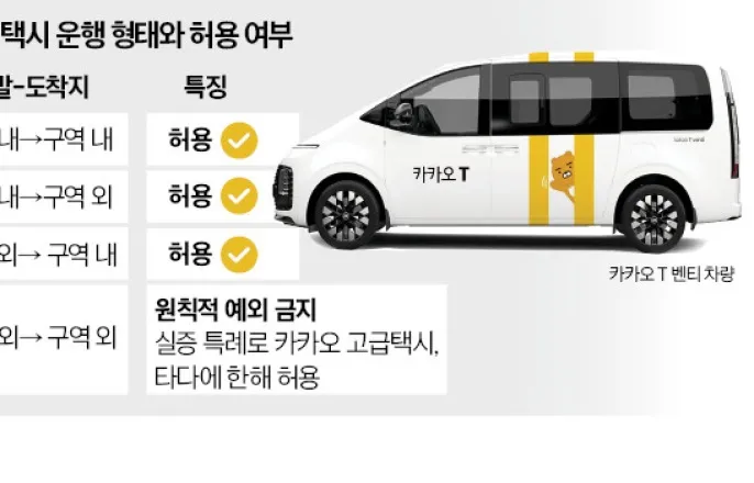 정부,단일권역실증특례승인사업구역수도권전체로확대어디서나호출받아영업가능공차율낮춰호출성공률높여차량이용자들만족도커질듯정부가카카오모빌리티의고급택시에수도권(서울·경기·인천)을하나의단일사업권으로인정하는실증특례를승인했다.행정구역마다운행권을나누는기존권역제를깨고수도권을하나의택시생활권으로묶었다.택시호출시장1위인카카오모빌리티가수도권단일권역실증허가를받으면서지자체별로운행권을나누던기존택시규제가전환점을맞을것이란분석이힘을얻고있다.◇수도권전역한개권역으로묶는다8일모빌리티업계에따르면국토교통부는지난27일카카오모빌리티의‘대형·고급형택시사업구역광역권통합운영’실증특례를승인했다.카카오T의고급택시(벤티·블랙)와대형승합택시의사업구역을기존‘특별시·광역시·도’단위에서수도권전체로확대해서울·경기·인천어디서든배차와운행이가능하게하는내용이다.국토부측은“인접지역간차량재배치를유연하게하면공차율이낮아지고호출성공률이높아져이용자만족도가개선될것으로보고있다”고설명했다.현행여객자동차운수사업법은택시운송사업을지자체별로구획하고있다.이때문에행정구역경계를넘은택시는원출발지로되돌아와야만정상적인영업이가능했다.예컨대서울에서용인까지이동한차량은서울행호출은받을수있어도인천행호출은받지못해빈차로복귀해야했다.이과정에서공차율증가와배차실패가반복됐다.공항·역세권새벽수요폭증,심야도심콜몰림,외곽지역차량유휴증가등도권역제가낳은대표적비효율로꼽힌다.수도권전역이이미하나의생활권으로움직이고있음에도차량공급은행정경계에묶여재배치가불가능했다는지적이다.카카오모빌리티측은이를해결하기위한실증작업이이번특례의핵심이라고설명했다.카카오모빌리티에따르면지난해12월철도노조파업으로정부가중형택시의수도권구역을한시통합했을당시택시호출은전달대비서울과경기각각56.8%,21.5%증가했다.같은시기수도권전체호출증가율은28.2%였다.단일권역운영이수요·공급불일치를상당부분해소할수있다는점이확인됐다.◇배차성공률‘급등’…확장가능성도정부가고급택시부터규제를풀기시작한건이해관계자들사이충돌을피하기위한선택이라는해석도나온다.지역별면허권가격차이가배경이다.택시번호판거래플랫폼인남바원택시에따르면지난10월기준개인택시면허가격은서울1억1900만원대,경기권1억6300만원대,인천1억2300만원대등지역별격차가뚜렷하다.이때문에일반택시면허를단일권역으로묶을경우고가면허를보유한기사들의재산권침해논란이불가피하다는게업계의설명이다.반면고급택시는공급대수가적고면허기반이비교적단순해사회적마찰이적다는분석이다.운행량과수요패턴도일반택시보다단순해정책변화의효과를플랫폼데이터로정확히측정할수있다는점도정부가우선실증대상으로선정한이유로거론된다.업계관계자는“일반택시는법인·개인택시,각지자체의이해가복잡하게얽혀있어권역제를바로손대기어렵다”며“고급택시는충격이작고실험군으로적합하다”고말했다.이번단일권역실증은지난7월국내차량호출서비스업체타다에이어두번째다.타다에이어카카오모빌리티까지참여한이번실증에서배차·공차개선효과가입증할경우일반택시규제개편으로이어질가능성이높다는분석이나온다.앞선한시통합사례에서경기북부·서부등외곽지역의배차성공률이최대20%포인트가까이뛰며지역간서비스격차가줄어든점도정책확장의근거로거론된다.한모빌리티업계관계자는“이번실증은정부가장기적으로추진할수도권택시규제개편의방향성을가늠하는분기점이될것”이라고말했다.안정훈기자[email protected]©한국경제.무단전재및재배포금지.