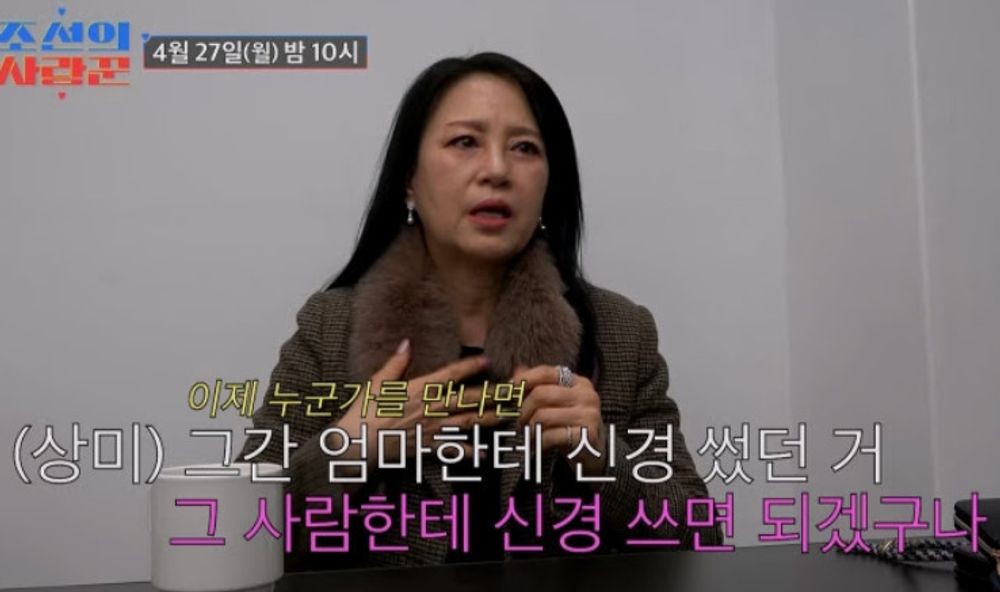 ‘조선의사랑꾼’이상미,64세‘황혼소개팅’(제공:TVCHOSUN)TVCHOSUN극사실주의다큐예능‘조선의사랑꾼’에서배우이상미가설레는마음으로꽃단장에나선다.오는27일방송될'조선의사랑꾼'선공개영상에서는과거국민드라마'전원일기'에서'개똥엄마'역으로시청자들에게많은사랑을받은이상미가다시한번'조선의사랑꾼'을찾는다.이상미는"(엄마가)뇌졸중이오면서부터너무나도힘든간호를하게됐다"면서지난40년간의세월중무려21년간어머니를모시며병시중을들었다고과거를회상했다.그는앞서"(누군가를만나면)그간엄마한테신경썼던거,그사람한테신경쓰면되겠구나…"라며황혼소개팅에용기를낸솔직한이유를밝힌바있다.공개된영상속이상미는새로운만남을앞두고메이크업을받았다.그는"화사하고어려보이게해달라.중요한날이다.바깥의신부보다예쁘게해달라"면서들뜬마음을감추지못했다.이어"우리아빠같은마음씨를갖고계신분,어른처럼나를바라봐줄수있는남자…"라고이상형을꼽으며만날상대에대한설렘을드러냈다.이상미는"10년은어려졌다"며메이크업이끝난자기모습에화들짝놀라는순수한소녀같은모습으로훈훈함을자아냈다.마침내자신만의행복을찾아나선이상미의소개팅상대는누구인지,'조선의사랑꾼'에서좋은인연을만날수있을지귀추가주목된다.한편'효녀'이상미의새로운인생의시작은극사실주의다큐예능TVCHOSUN‘조선의사랑꾼’에서오는27일오후10시에공개된다.송미희기자bnt뉴스연예팀기사제보[email protected]©bnt뉴스.무단전재,재배포및AI데이터활용금지