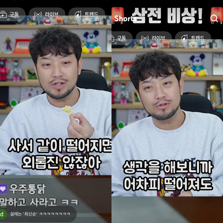 사진=침착맨유튜브채널.유튜버침착맨(이말년)의삼성전자재매수발언이온라인에서또한번‘인간지표’밈을소환했다.침착맨은최근자신의유튜브채널에서“왜삼전가격이떨어졌죠?삼전사셨나요?”라는시청자댓글에“어제샀다.열받아서합류했다”고답했다.그는“7만원에팔고21만원에재진입했다.어차피떨어지면다같이떨어지지않나.안사면나혼자외로운데,같이사서같이떨어지면외롭지않다”고말해웃음을자아냈다.삼성전자는3일미국의이란침공등대외리스크영향으로전거래일대비9.88%하락한19만5100원에장을마쳤다.침착맨은21만6500원에거래를마친지난달27일주식을매입한것으로보인다.해당발언이알려지자온라인에서는“침착맨이사면고점신호아니냐”,“인간지표또등판”,“이제매수전에공지부터해달라”등유쾌한반응이이어졌다.앞서그는지난해10월‘9만전자’돌파당시“저74층에서불법투신했다.제방금기어가‘삼전’”이라고말해화제를모은바있다.김지혜기자[email protected]©일간스포츠.무단전재및재배포금지.