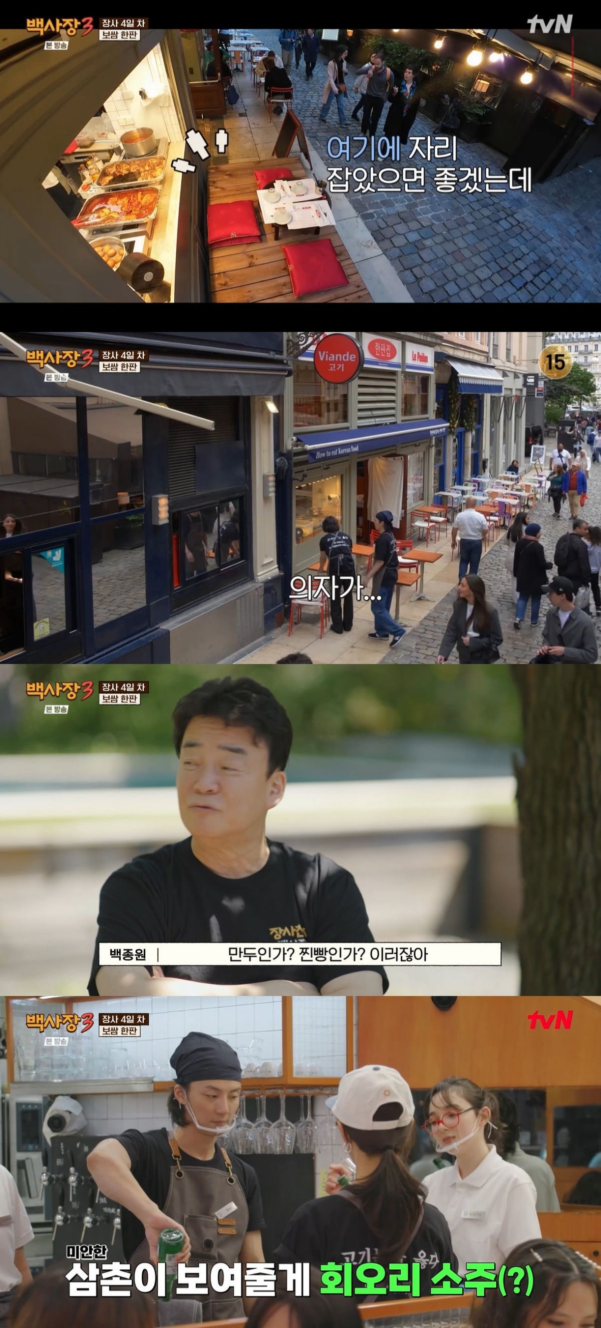 [스타뉴스|안윤지기자]/사진=tvN예능'세계밥장사도전기백사장3''백사장3'그룹소녀시대멤버유리가완벽한소주회오리를선보였다.3일방송된tvN예능'세계밥장사도전기백사장3'(이하'백사장3')에서는장사4일차가시작됐다.유리는프랑스출신직원들을데리고가서"얘들아,막걸리따는법을알려주겠다.흔들고공기를먼저빼줘야한다"라며막걸리따르는법을알려줬다.이때윤시윤이소주를주문한손님들을받고유리에게소주회오리방법을배웠다.완벽한유리에반해윤시윤은어색한모양새를보였다.윤시윤은"어린이에게꿈과희망을보여주고싶다"라며가족들앞에서소주회오리를선보였지만,분위기는망하고말았다.그는머쓱한말투로사과하고나왔다.하지만유리는손님들의호응을이끌며성공적으로소주회오리를보였다.윤시윤은"아니난왜안되나.부럽다"라고하자,존박은"유튜브보고공부하더라"고말했다.점심장사엔사람이많았으나저녁장사엔손님이없는상황.존박은가게앞평상에대해"'너무낯선가'라는생각도들었는데바닥에앉는게불편할수도있고..."라며결국평상을없애기로결정했다.이로써3인좌석이8인좌석으로변경됐다.그런데도손님은몰려들지않았고,존박은"바쁘면힘든데사람이없으면맥이빠진다"라고말했다.윤시윤도"속상하다"라며열심히호객행위를했지만통하지않았다.한편'백사장3'은매주화요일오후10시15분에방송된다.안윤지기자[email protected]©스타뉴스&starnewskorea.com,무단전재및재배포금지