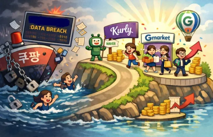 쿠팡의개인정보유출사고사실이발표된지석달이지나면서국내주요경쟁이커머스플랫폼들에서쿠팡악재에따른반사이익이본격적으로나타나고있다.5일유통업계에따르면네이버,컬리,G마켓(지마켓)이쿠팡사태속각사가추진한경쟁력강화전략이힘을받으면서구체적인성과로이어지고있다.네이버쇼핑앱네이버플러스스토어는아시아최고신규쇼핑앱에이름을올렸다.글로벌앱분석업체센서타워가다운로드수를기준으로선정한것이다.네이버플러스스토어는지난해아시아태평양(APAC)지역에출시된쇼핑앱가운데가장많은다운로드를기록했다.네이버플러스스토어는지난3월네이버가출시한쇼핑앱으로,출시1년도안돼지난해4분기까지누적1290만건이설치됐다.지난달월간활성이용자수(MAU)는약751만명으로1월보다5.9%증가했다.특히AI추천을통해발생한지난해4분기거래액은전분기대비54.6%증가했고,해당앱의평균체류시간도24.6%증가했다.또충성고객과신규가입자수가동반성장하면서작년12월기준네이버플러스멤버십신규가입자수가전월대비71%증가했고,4분기멤버십매출은전년동기대비17.0%증가했다.네이버는이기세를몰아해당앱의AI기능을강화한다.대화하며쇼핑을할수있는‘쇼핑AI에이전트’(베타1.0버전)를최근출시했다.네이버의방대한데이터를기반으로상품정보요약부터비교,리뷰분석을제공하는게핵심이다.쇼핑키워드를입력하면,쇼핑AI에이전트가작동해쇼핑탐색가이드를제시하거나AI에게물어보기를제안한다.네이버와손잡은컬리의성장세도눈에띈다.컬리는지난해역대최대매출,첫영업이익흑자를기록했다.연결기준매출2조3671억원,영업이익131억원이다.특히지난해9월네이버플러스스토어에서출시한‘컬리N마트’의거래액이가파르게성장중이다.1월거래액이지난9월대비7배이상성장했다.월평균50%이상신장률을이어가고있다.컬리는컬리N마트,N배송등네이버와의협업사업을지속강화하고,지난달도입한자정샛별배송등신규물류서비스를기반으로물류경쟁력을강화할계획이다.또식단관리앱‘루션’과유튜브,큐레이터프로그램등을통해신규고객의유입채널도다각화한다.G마켓은비활성고객,이른바‘집나간고객’의방문이눈에띄게증가하고있다.실제로1년간G마켓을찾지않았던휴면고객의재방문(RUV)이크게늘었다.G마켓에따르면,RUV는1월기준지난해대비40%증가했고,이들의구매율(Buyer)도28%증가했다.이러한흐름은지난달에도이어졌다.2월의1년휴면고객재방문은지난해대비19%증가했으며,이들의구매율도26%늘었다.MAU도증가세다.와이즈앱·리테일에따르면,전년대비MAU증가율은1월25.4%,2월11.4%로나타났다.업계에서는이들플랫폼의부상이쿠팡의개인정보유출사태와무관하지않다고보고있다.국내최대이커머스업체인쿠팡은이용자수가최근감소세를보이고있기때문이다.리테일분석서비스와이즈앱·리테일에따르면지난달쿠팡의MAU는3312만여명으로,1월대비0.2%줄었다.쿠팡앱이용자수는작년11월말개인정보유출사실이알려진이후3개월내리김소세다.챗GPT로그린일러스트.김수연기자[email protected]©디지털타임스.무단전재및재배포금지.