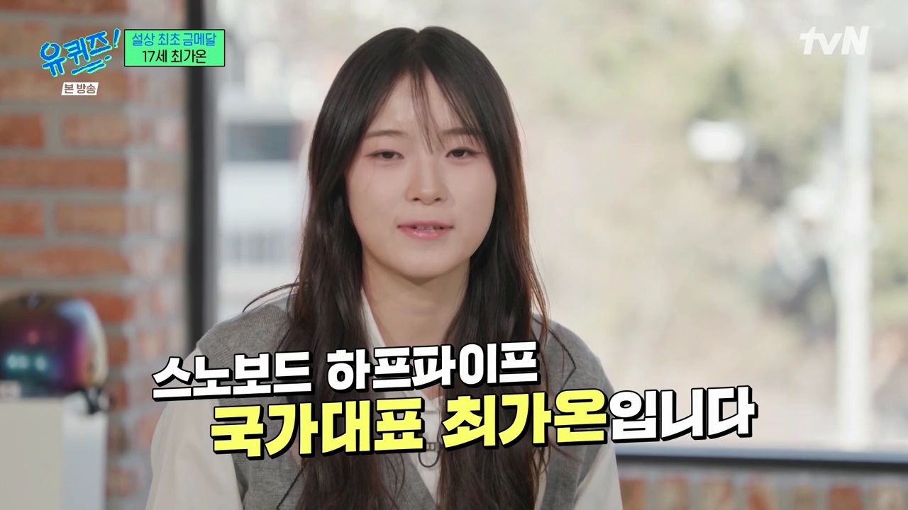 [리뷰]tvN<유퀴즈온더블럭>[이준목기자]"조명아래눈이계속내리는데그광경이너무예뻐서눈물이나오더라.그때'내가여기서죽더라도후회없이해보자'는생각이들었다.그간절함과승부욕이저를일으켜세워준것같다.어릴때부터제게'뭘하든끝까지해야한다'고말씀해주셨던아빠의말대로,끝까지포기하지않고해낸스스로가자랑스럽다는생각이들었다."4일방송된tvN<유퀴즈온더블럭>에서는2026밀라노동계올림픽스노보드금메달리스트최가온이출연했다.설상종목최초의금메달▲유퀴즈최가온ⓒTVN스노보드하프파이프국가대표최가온은최근막을내린동계올림픽에서첫출전만에'대한민국역사상설상종목최초의금메달'을따낸주인공이됐다.올림픽을마치고돌아온최가온은,친구들과소소한파티를즐기는등,평범한또래소녀의일상으로잠시되돌아와있었다.올림픽에서당한부상으로손에보호대를착용하고있었지만다행히순조롭게회복중이라며근황을전했다.최가온은올림픽1-2차시기당시크게넘어져손바닥뼈가3곳이나골절되는큰부상을입고도불굴의의지로포기하지않은끝에마지막시도에서극적인역전우승을했다.금메달을따내고시상대에서최가온은참았던눈물을펑펑쏟아냈다.스노보드하프파이프의높이는,아파트3층에해당하는약7미터에이른다.선수들이경기하면서점프하게되면,최고점의높이는약10미터까지올라간다.여기에회전력까지더해지면자칫추락시충격이어마어마하여부상위험이매우큰종목이기도하다."첫올림픽인데메달색이또금색이었다.몰랐는데제가첫번째금메달이어서깜짝놀랐고행복했다.1차시기때크게다쳐서못일어날것같다는생각도들었다.이대로올림픽을포기해야하나싶었는데,그러면이하루를평생후회할것같아서다시일어났다."부상당시의료진은최가온에게'들것에타게되면병원으로후송하고,자력으로내려가면경기를속행할수있다'는사실을알려주며결정을재촉했다.간절했던최가온은스스로몸을일으켜걸어내려왔지만몸상태는이미만신창이였다.올림픽전부터척추골절로부상이있었고경기중넘어져손바닥도골절된상태였다.최가온과5년간함께했던벤위스너코치는'기권하자'며극구만류했지만최가온의의지가워낙확고했다.1차시기에입은충격의여파가남아있었던최가온은2차에서도900도회전시도를하다가다시넘어지고말았다.지켜보던많은이들도안타까워하며포기하는분위기였다.그러나최가온은2차의실패에서오히려성공의확신을느꼈다고고백했다."다리상태를확인하고나서'3차때는할수있겠다'는생각이들었다.3차시기를앞두고눈이정말많이왔는데너무예뻐서눈물이나오더라.'내가여기서죽더라도기술다하고힘빠져서죽겠다,후회없이해보자'라고생각했다."비장한마음으로마지막시기에나선최가온은불굴의의지로부상을이겨내고1,2차때와같은기술로점프를시도했다.자유롭게하늘을날아오른최가온은마지막점프까지멋지게성공시키며3차시기를마무리했다.그렇게최가온은90.25점으로1위를차지하며극적인금메달을획득했다."많이후련했다.3차때넘어졌으면내런(플레이)을올림픽에서못보여드리는거니까.다행히랜딩을해서제런을보여드릴수있어너무후련하고울컥했다.도파민이터져서경기가끝나고도일주일간잠을못잤다.몸은피곤한데잠이안왔다.눈에아무것도안들어오고경기장면만머릿속에자꾸떠올랐다."1호팬아버지▲2월12일(현지시간)이탈리아리비뇨스노파크에서열린2026밀라노·코르티나담페초동계올림픽스키스노보드여자하프파이프결선에서90.25점을획득해금메달을획득한한국최가온이금메달을목에건뒤기뻐하고있다.ⓒ연합뉴스최가온의롤모델은한국계미국인선수인클로이킴이다.최근2연속올림픽금메달을수상했던클로이킴은밀라노대회에서최가온에게밀려3연패를놓쳤다.클로이와최가온은10년가까이우정을이어온각별한사이였다.올림픽경기를마치고클로이는자신의장비도벗지않은채달려와금메달이확정된가온을꼭안아주며축하해주는훈훈한장면을만들어냈다.클로이는"가온이는제동생이나다름없다.너무자랑스럽다.넌진짜훌륭한스노보더"라며진심어린극찬을아끼지않았다.최가온은7살에보드를처음접하고9살부터선수생활을시작했다.13세에는2022주니어세계선수권대회에서우승을차지했고,스노보드월드컵에서는최연소로3회연속1위에오르며최고의유망주로두각을나타냈다.최가온을세계적인선수로이끈전매특허기술은공중에서두바퀴반을회전하는고난도의'스위치백사이드900'이다.특히여자선수가이기술을사용한것은최가온이세계최초였다."저는이기술을어렵거나특별하다고생각해본적이없었다.그런데제모습을처음본코치가'여자들이아무도못하는방향으로돈다.재능이있다'고칭찬했다.그래서어릴때부터아빠와그기술을집중적으로연마하는방향으로훈련했다.시합에나가보니해당기술을쓴게여자세계최초였더라."고급기술을연마하기위해서는그만큼뼈를깎는노력이필요했다.연습벌레였던최가온은매일제일일찍산에올라가서제일늦게까지훈련을소화하고하산하는일상을반복했다.꿈많을나이의어린소녀에게는힘들법도했을텐데최가온은"저한테훈련은그냥밥먹고잠자는것처럼당연한일이었다"며담담한반응을보