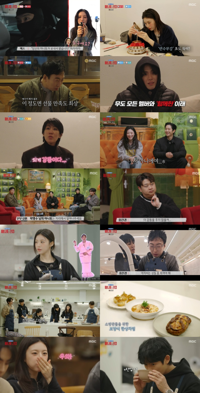 사진제공|MBC[스포츠동아이수진기자]MBC예능‘마니또클럽’2기회원들이원팀케미를발산했다.8일방송된‘마니또클럽’6회에서는정해인,고윤정,박명수,홍진경,김도훈그리고히든마니또윤남노셰프가처음으로한자리에모이며본격적인‘시크릿마니또’작전의시작을알렸다.먼저정해인의조력자로나선덱스의좌충우돌활약이웃음을안겼다.퀵배달원으로변장한덱스는보디캠까지장착한채고윤정에게선물을전달하는데성공했다.하지만곧바로고윤정의추격이이어지며상황은순식간에추격전으로변했다.덱스는넘어지며멘붕에빠졌고가까스로도망치는모습으로웃음을자아냈다.마니또회원들의선물작전도이어졌다.박명수는‘무도키즈’김도훈을위해‘무한도전’한정판굿즈를준비했고김도훈은홍진경을위한화보촬영이벤트를마련했다.고윤정역시박명수를위해직접만든홍삼케이크를선물하며훈훈함을더했다.사진제공|MBC마니또의정체도드디어공개됐다.본부에모인멤버들은서로의마니또를확인하며첫만남을가졌고정해인은고윤정을위한깜짝선물‘두쫀쿠’를준비해감동을안겼다.여기에정해인의마니또였던히든카드윤남노셰프가등장하며현장을놀라게했다.이날멤버들이모인이유는따로있었다.마니또활동으로받은온기를사회에전하기위한‘시크릿마니또’작전을준비하기위해서였다.대상은부천소방서대원들.멤버들은밤낮없이시민을지키는소방대원들을위해정성가득한특식한상을준비했다.윤남노셰프의지휘아래멤버들은해신칼국수와전복떡갈비,그리고‘마니또표두쫀슈’를만들며요리에나섰다.박명수와홍진경의끊임없는상황극,고윤정과김도훈의개인기까지더해지며현장은웃음이끊이지않았다.완성된음식을맛본멤버들은“대박이다”라며만족감을드러냈다.과연소방대원을위한시크릿마니또작전이성공할수있을지관심이모인다.‘마니또클럽’은받은온기를세상에나누는사람들의이야기를담은언더커버리얼버라이어티로매주일요일오후6시5분방송된다.이수진기자[email protected]©스포츠동아.무단전재및재배포금지.