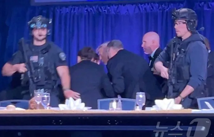 산탄총·권총·칼로무장한채만찬장앞검색대돌파시도트럼프‘정신적문제있는단독범행’추정…CCTV전수조사착수도널드트럼프미국대통령이25일(현지시간)워싱턴DC의워싱턴힐튼호텔에서열린백악관기자단만찬행사에서총격소리가나자경호를받으며대피하고있다.트럼프대통령은무사피신했으며용의자는체포된것으로알려졌다.ⓒ로이터=뉴스1(서울=뉴스1)권영미기자=도널드트럼프미국대통령이25일(현지시간)밤백악관출입기자단연례만찬자리에서또다시암살위기에처했다.트럼프는이번에도역시안전하게빠져나왔고경호요원이한명총에맞았지만,생명엔지장이없는상태다.AFP통신에따르면워싱턴힐튼호텔에서열린이행사의환영사가끝난후총성이들렸다.떠들썩한소리가들리자연단위테이블에앉아있던트럼프대통령은왼쪽으로고개를돌려상황을지켜봤다.총을든경호팀이연단위로올라오고다른경호원들도대통령을보호하기위해뛰어온후트럼프는이들에둘러싸인채연회장을빠져나갔다.만찬장에있던수백명의참석자들은테이블밑으로몸을숨겼다가행사가연기되자호텔로비로,그리고야외로대피했다.당국은고위인사나만찬참석자중다친사람은없다고밝혔다.경찰에따르면,한"총을든남성"이현지시간저녁8시36분께만찬이열리던연회장바로앞호텔로비보안검문소를뚫고돌진했다.도널드트럼프미국대통령이25일(현지시간)트루스소셜에공개한백악관출입기자단만찬행사인근총격사건용의자로추정되는자의모습.(트루스소셜갈무리.재판매및DB금지)2026.4.26ⓒ뉴스1트럼프대통령은자신의소셜미디어플랫폼인트루스소셜에용의자가보안검색대로돌진하는모습과경찰관들에게포위되는장면이담긴영상을공유했다.제프리캐럴워싱턴DC경찰청장대행은기자들에게"그는산탄총,권총,그리고여러개의칼로무장하고있었다"면서경찰이용의자와총격전을벌인후"그를검거했다"고덧붙였다.이과정에서비밀경호국요원한명이총에맞이병원으로옮겨졌지만,방탄조끼를입고있어생명에는지장이없다고밝혔다.용의자인콜토머스앨런(31)은총에맞지않았지만,검사를위해병원으로이송됐다가현재구금상태다.그는27일에연방법원에서기소될예정이다.폭력범죄중총기사용과위험한무기를사용한연방공무원폭행등두가지혐의로기소될전망이다.당국은이남성이이번사건의유일한용의자라고보고있다.당국은아직용의자의신원을공식적으로확인한것은아니지만언론들에따르면앨런은'칼텍'이라는약칭으로불리는미국명문이공계대학인캘리포니아공과대학을졸업한것으로알려졌다도널드트럼프미국대통령이25일(현지시간)백악관출입기자단만찬행사에참석했다가총격사건으로급히피신하는사건이발생했다.트럼프대통령부부를비롯해트럼프2기행정부내각인사들모두부상없이무사했고,캘리포니아출신으로추정되는총격범은현장에서체포됐다.ⓒ뉴스1윤주희디자이너한편용의자가행사장바로지척까지어떻게접근할수있었는지의문도제기되고있다.참석자들은연회장밖에금속탐지기가설치되어있었지만,그전이나호텔입구에는검사가없었다고지적했다.당국은용의자가돌파하려했던검문소는"연회장바로바깥"에있었다고밝혔다.용의자는호텔투숙객으로추정되고있는데,이런이유로호텔정문이나로비를거치지않고도무장을하고행사장에접근할수있었던것으로보인다.캐럴경찰청장대행은"총이어떻게호텔안으로들어왔는지,용의자가어떻게여기까지왔는지알아내기위해호텔전체의CCTV영상을검토할것"이라고밝혔다.범행동기에대해서는아직밝혀지지않았다.하지만트럼프대통령은"내생각에는그는단독범행을저지른것같다"며,용의자의동기는아직불분명하지만"정신적으로문제가있는사람"이라고생각한다고말했다[email protected]©뉴스1.Allrightsreserved.무단전재및재배포,AI학습이용금지.