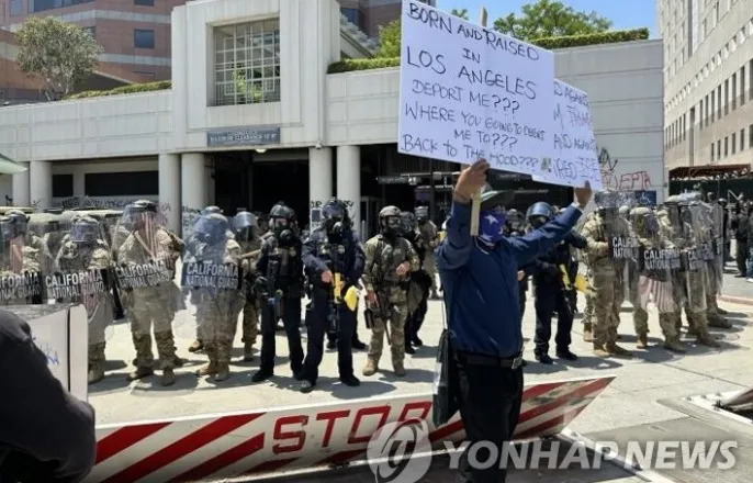 주방위군동원이어연방정부개입수위높여…美언론"트럼프-뉴섬갈등격화"트럼프"그들이침뱉으면우리는때릴것"…'뉴섬체포지지'언급하기도미LA에서불법이민단속에항의하는시위대와이를막아선주방위군(로스앤젤레스=연합뉴스)임미나특파원=8일(현지시간)미국로스앤젤레스(LA)도심의연방구금시설인'메트로폴리탄디텐션센터'(MetropolitanDetentionCenter)앞에서주방위군이시위대와대치하고있다.시위대는미이민세관단속국(ICE)의대대적인불법이민자단속에반발하는시위를사흘째벌이고있다[email protected](워싱턴=연합뉴스)박성민특파원=미군이9일(현지시간)도널드트럼프행정부의불법이민자단속·추방작전에대한반대시위가벌어지고있는로스앤젤레스(LA)에해병대를파견키로했다.이는주방위군파견에이어미군의정예전투자산인해병대까지시위진압에투입하겠다는것으로,현지시위의격화또는진압사이에서분수령이될전망이다.또트럼프대통령과민주당소속의대권잠룡인개빈뉴섬캘리포니아주지사사이의갈등수위는더욱첨예해질것으로보인다.미북부사령부는이날홈페이지에게시한성명에서"주말동안경계상태에있던해병대보병대대를활성화했다"며"제1해병사단산하제7해병연대제2대대의해병대원약700명은LA지역에서연방인력과재산을보호중인'태스크포스51'아래운용되는타이틀10병력과함께원활하게통합될것"이라고밝혔다.북부사령부는태스크포스51을미육군의북부비상지휘소로소개하면서"국토방어및국토안보작전에서민간당국및국방부기관과협력하기위해신속한동원능력을제공한다"고설명했다.또한"태스크포스51은타이틀10지위의약2천100명의주방위군과700명의현역해병대로구성돼있다"며"태스크포스51은긴장완화,군중통제,무력사용기본규칙에대한훈련을받았다"고덧붙였다.'타이틀10'은대통령이주(州)정부의요청이없더라도주방위군이나연방병력을주에배치할수있는권한이명시된연방법을의미하는것으로보인다.즉,이러한대통령의권한에따라LA시위대응을수행중인태스크포스51에해병대를추가로배치하겠다는취지다.미일간워싱턴포스트(WP)는익명의국방부관계자를인용해해당해병대병력이이날오후이동하기시작했다면서"해병대가언제현지에도착해작전을시작할지는명확하지않다"고전했다.WP는또"연방명령을받는해병대와주방위군은지원역할을하되직접적인이민단속이나법집행작전에참여할수없다"면서도"트럼프대통령이내란법을발동하면바뀔수있다"고덧붙였다.LA시위현장[로이터연합뉴스자료사진.재판매및DB금지]트럼프대통령은LA시위가격화하자시위대를사실상폭도로규정,캘리포니아주방위군2천여명배치를명령해강경진압에나선바있다.트럼프대통령은이날북부사령부의발표가나오기전에워싱턴DC에서열린대미투자촉진좌담회에서LA시위진압을위해주방위군에더해해병대까지보낼계획에대해선"상황을볼것"이라며가타부타확답을하지않았었다.다만,이에앞서이날자신이설립한소셜미디어(SNS)트루스소셜에올린글에서는"'그들이침을뱉으면우리는때릴것이다'는LA에서벌어지고있는,재앙같은'개빈뉴스컴'(Newscum·주지사의성인Newsom과쓰레기를의미하는scum을합친말)이불러일으킨폭동과관련한미국대통령의성명"이라며강경대응기조를고수할방침을재확인한바있다.또한트럼프대통령은이날백악관에서기자들과만난자리에서국경문제총괄담당자인톰호먼이"불법이민단속을방해"하면뉴섬주지사등을체포할수있다고경고한데대해질문받자"내가톰이라면그렇게(체포)할것이다.멋진일이라고생각한다"고답하기도했다.WP는해병대배치에대해"트럼프대통령과뉴섬주지사사이의LA혼란을둘러싼갈등이크게격화된것"이라고평가했다.뉴욕타임스(NYT)도"법집행기관과행정부의이민단속에반대하는시위대의수일간충돌후에잠재적으로긴장을고조시킬수있다"고분석했다.뉴섬주지사는엑스(X·옛트위터)에"미국해병대는민주주의수호를위해여러전쟁에서명예롭게봉사해왔다"며"그들은독재대통령의정상이아닌환상을충족시키기위해미국땅에파견돼자신의동포들과맞서면안된다"고적었다.뉴섬주지사는또NYT와인터뷰에서도해병대배치를"도발"로규정하면서,"트럼프대통령이더많은두려움과분노를조장하고분열을심화시키기위해행동하고있다"고비난했다[email protected]▶제보는카톡okjeboCopyright©연합뉴스.무단전재-재배포,AI학습및활용금지