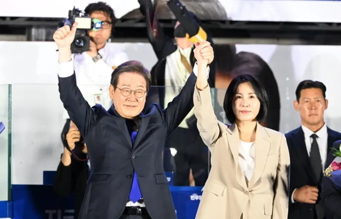 李“국민위대한결정에경의”…4일임기시작최종투표율79.4%…민주당3년만에정권탈환국무총리에김민석,비서실장강훈식유력검토이재명더불어민주당대통령후보가당선이확정된가운데4일서울여의도에서김혜경여사와함께지지자들에게인사를하고있다.[김호영기자]이재명제21대대통령당선인이3일선거에서일찌감치승리를확정짓고4일부터5년간의대통령임기를시작한다.예상을깨는45년만의비상계엄선포로군인들이국회로진입하는장면을목도한국민들은“내란을종식하고진짜대한민국을만들겠다”는이당선인의약속을선택한것이다.4일오전1시현재개표율73.23%인상황에서이재명당선인은48.46%를기록하며김문수국민의힘후보(42.95%)를앞섰다.3일투표마감직후발표된KBS·MBC·SBS방송3사출구조사에서는이당선인이과반인51.7%득표율을기록할것으로예상됐다.김문수국민의힘후보는39.3%로오차범위밖에서2위를차지했다.이준석개혁신당후보는7.7%로선거비용일부를보전받을수있는10%의벽을넘지못했다.이당선인은수도권은물론충청권에서도넉넉하게앞섰다.세대별로보면40대와50대에서압도적지지를이끌어냈다.출구조사에따르면더불어민주당은국민의힘에정권을빼앗긴지3년만에다시여당지위를되찾게됐다.1997년대선에서김대중대통령이당선된이후4번째민주당정권이기도하다.이당선인은TK(대구·경북)출신최초의민주당대통령이라는기록도갖게됐다.이재명제21대대통령당선인이3일밤대선승리가확실시되자인천계양구의자택을나서며손을들어환호하는주민들에게인사하고있다.그는이어서울여의도더불어민주당당사로이동해선거대책위원회관계자들을격려하고지지자들을직접만났다.[인천=한주형기자]이당선인은3일오후11시50분께인천계양구자택앞에서기자들과만나“국민의위대한결정에경의를표한다”고소감을밝혔다.그는이어“우리국민의기대에어긋나지않도록제게주어진큰책임과사명을최선을다해수행하도록하겠다”며“감사드린다”고말했다.이어서울여의도민주당당사로이동했다.이후이당선인은이날오전1시10분께서울여의도국회앞대로에서진행한수락연설에서“내란을확실히극복하고총칼로국민을겁박하는군사쿠테타가(다시는)없도록민주주의를회복하겠다”며“온힘을다해서경제를살리고민생을회복시켜고통스러운삶에서회복시켜드리겠다”고말했다.이어“국민의생명과안전을지키는국가의책임을완벽하게이행하는안전한나라를만들겠다”고강조했다.이번대선결과는무엇보다윤석열전대통령의12·3비상계엄선포에대한국민의심판으로풀이된다.헌법재판소가지난4월4일대통령파면판결을내린데이어국민이선거를통해윤전대통령은물론국민의힘까지심판한셈이됐다.김형준배재대석좌교수는“이번대선결과는내란세력을심판해달라는이재명당선인의호소에대한유권자들의응답”이라며“이번대선의본질은‘이재명이냐,김문수냐’가아닌‘윤석열을심판할것인가,아닌가’였다”고풀이했다.제21대대통령선거일인3일서울여의도국회앞에모인더불어민주당이재명대선후보지지자들이개표방송을보며환호하고있다.[김호영기자]이당선인은이번대선전이시작된이래여론조사에서단한번도1위자리를놓치지않았다.상대후보들은선거운동내내이당선인이대통령이돼선안되는이유에공세를집중했지만,이당선인은경제성장과국민통합이라는긍정의메시지를강조했다.그리고마침내새롭고강력한리더십을원하는국민의선택을받아내는데성공했다.분배에서성장으로우클릭변신도주효했다는평가다.이당선인은지난20대대선당시기본소득으로대표되는복지·분배정책을전면에내세웠지만이번대선에서는인공지능(AI)·방산·바이오등신성장동력발굴과대규모추가경정예산편성등재정의역할을강조하면서경제위기상황에기민하게대응했다.이날출구조사는오전6시부터오후8시까지전국325개투표소에서8만146명을대상으로진행됐다.오차범위는95%신뢰수준에표본오차±0.8%포인트이며사전투표결과는충분히반영되지못하기때문에실제득표율과는차이가있을수있다.대통령탄핵소추로실시된보궐선거인만큼이번대선에대한국민적관심은뜨거웠다.최종투표율은이날오후8시30분기준으로79.1%로1987년민주화이후네번째로높은투표율을기록했다.3년전윤전대통령이이후보를상대로0.7%포인트차로신승할당시투표율(77.1%)보다2%포인트높다.13대(89.2%),14대(81.9%),15대(80.7%)다음으로높다.지역별로보면정권교체열망이높았던광주가83.8%로가장높았고,제주가74.2%로가장낮았다.보수지지세가강한대구는80.2%였다.한편초대국무총리로는김민석민주당최고위원(61)이유력한것으로알려졌다.대통령실비서실장에는강훈식민주당의원(52)이,정책실장에는이한주민주연구원장(69)이비중있게검토되는것으로전해졌다.Copyright©매일경제&mk.co.kr.무단전재,재배포및AI학습이용금지