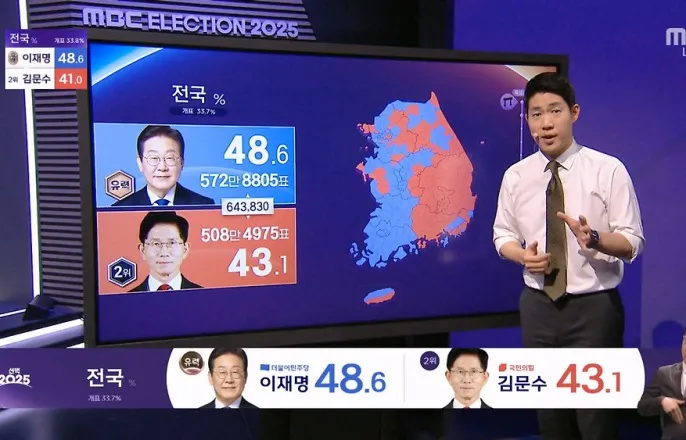 더불어민주당이재명대선후보가선거를하루앞둔2일서울여의도공원마지막유세에서연설을마친뒤시민들에게인사하고있다.연합뉴스이재명더불어민주당대통령후보가제21대대통령에당선될것이확실시된다.중앙선거관리위원회에따르면3일밤11시20분개표율32.3%를기준으로이후보는48.43%득표율을기록했다.김문수국민의힘후보는43.29%에그쳤다.이준석개혁신당후보는7.24%를얻었다.KBS·MBC·SBS등방송3사는11시10분을전후해이후보당선이유력하다고예측했다.이날저녁8시투표마감직후발표한한국방송협회와KBS·MBC·SBS로꾸려진방송사공동예측조사위원회(KEP)의출구조사에서는이후보가51.7%로과반을얻을것으로봤다.김후보는39.3%에머물것으로전망됐다.차이는12.4%P다.이준석개혁신당후보는7.7%에그칠것으로나타났다.출구조사의표본오차는신뢰수준95%에서±0.8%P다.이재명후보는대구·경북과부산·경남등을제외한지역에서모두승리하는것으로예상됐다.이후보는△서울(이재명49.3%김문수40.1%이준석9.2%)△경기(이재명55.8%김문수34.6%이준석8.5%)△인천(이재명53.6%김문수37.4%이준석7.5%)등에서모두승리하는것으로예측됐다.전통텃밭인△광주(이재명81.7%김문수10.5%이준석5.9%)△전남(이재명80.8%김문수10.9%이준석6.4%)△전북(이재명79.6%김문수11.8%이준석6.7%)등에서도다른후보를크게꺾을것으로전망됐다.보수성향강한울산(이재명46.5%김문수44.3%이준석6.9%)에서도소폭앞설것으로나왔다.또이재명후보는또캐스팅보트로평가되는△대전(이재명51.8%김문수38.3%이준석8.8%)△충남·세종(이재명51.3%김문수39.7%이준석8.2%)△충북(이재명51.1%김문수40.2%이준석7.9%)등에서도다른후보에앞설것이라고점쳐졌다.△강원(이재명48.8%김문수42.2%이준석6.7%)△제주(이재명57.9%김문수31.2%이준석9.3%)등에서도이재명후보가승리할것으로나타났다.반면에김문수후보는보수세가강한△대구(이재명24.1%김문수67.5%이준석7.3%)△경북(이재명28.2%김문수64.0%이준석6.7%)등에서승리할것으로예상됐다.△부산(이재명42.7%김문수49.0%이준석6.9%)△경남(이재명43.4%김문수48.8%이준석6.3%)등에서는상대적으로적은차이의승리를거둘것으로예상됐다.이후보의승리는12·3비상계엄과윤석열정권의실정에국민이회초리를든것으로평가된다.이후보의압승은지난해12월3일윤석열전대통령의비상계엄선포와이를둘러싼정부·국민의힘의정국수습방안등에대한심판심리가작용했기때문으로풀이된다.지지층결집을노린국민의힘일각에서는내심역전도예상했지만민심은비상계엄세력과단절하지않은이들에회초리를들었다.내심두자릿수득표를노리던이준석후보는선거1주전치러진마지막TV토론에서공개적으로여성의신체부위와젓가락등으로논란이된것이한자릿수득표에그친원인으로평가된다.박찬대민주당상임총괄선대위원장은방송3사출구조사발표이후국회의원회관에서취재진과만나“내란을확실하게종식하고국민통합을이뤄위기의대한민국을회복시키고도약시키고성장시키겠다.그런의미에서과반을넘긴것은굉장히바람직하다”고평가했다.최기창기자[email protected]©전자신문.무단전재및재배포금지.