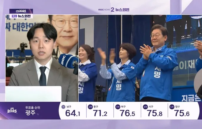 지난대선보다0.4%p높아전남79.3%최고…제주68.1%최저제21대대통령선거본투표일인3일오후울산남구월평초등학교체육관에설치된신정4동제2투표소에서한유권자가기표를마친투표지를투표함에넣고있다.[사진=연합뉴스][아이뉴스24김한빈기자]제21대대통령선거본투표일인3일오후4시기준전국평균투표율이71.5%로나타났다.지난2022년20대대선같은시간대투표율(71.1%)보다0.4%포인트(p)높은수준으로역대대선의동시간대투표율중최고치다.중앙선거관리위원회에따르면이날오전6시부터진행된투표에서전국유권자4439만1871명가운데3173만4725명이투표를마쳤다.중앙선관위이날오후1시부터지난달30~31일실시된사전투표율(34.7%)를비롯해거소(우편)·선상·재외투표의투표율과이날진행되는본투표의투표율을합산한결과를발표하고있다.지역별로는전남이79.3%를기록해가장높았고,이어광주(78.3%),전북(77.5%)순으로높은투표율을보였다.반면제주는68.1%로가장낮은투표율을보였으며,이어충남(68.7%),부산(69.0%)순으로낮은투표율을기록했다.수도권은서울의투표율이71.5%로집계됐으며경기는71.4%,인천은69.8%로집계됐다.사전투표합산투표율이역대대선의동시간대투표율중최고치로나타남에따라최종투표율이지난1997년15대대선이후처음으로80%를돌파할지주목된다.이번투표는전국1만4295개투표소에서이날오후8시까지실시된다.단오후8시기준으로투표소에줄을서있다가대기번호표를받은유권자는마감시간이후에도투표할수있다.유권자는주민등록지기준으로지정된투표소에서만투표할수있으며,주민등록증과여권,운전면허증을비롯한신분증을지참해야한다.모바일운전면허증같은모바일신분증을지참할경우,유권자가투표소에서직접애플리케이션(앱)을실행해투표관리관에게보여주는식으로본인인증을해야한다.개표는전국251개개표소에서오후8시30분경부터시작될예정이다.중앙선관위는이날밤12시전후로당선인윤곽이드러날것으로전망했다.다만후보간득표율차이에따라이시점이앞당겨지거나늦춰질수있다./김한빈기자([email protected])Copyright©아이뉴스24.무단전재및재배포금지.